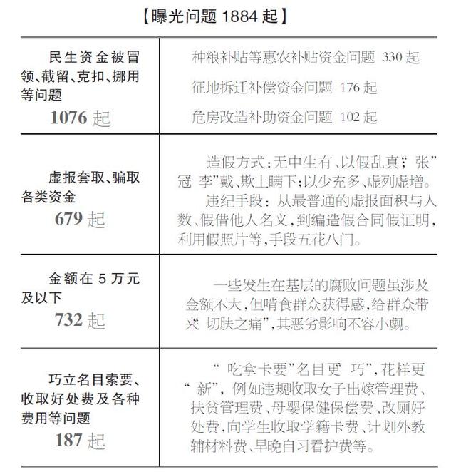 被曝光的1884起问题中,涉及金额在5万元及以下的有732起,占38.9%。