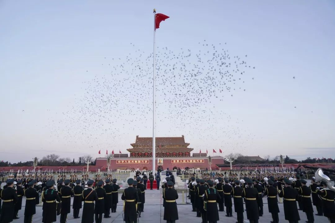 今天早上7时36分,天安门广场举行升国旗仪式,中国人民解放军仪仗队担任国旗护卫任务,它的惊艳亮相完美展现了升国旗仪式在新年的新气象新风采。