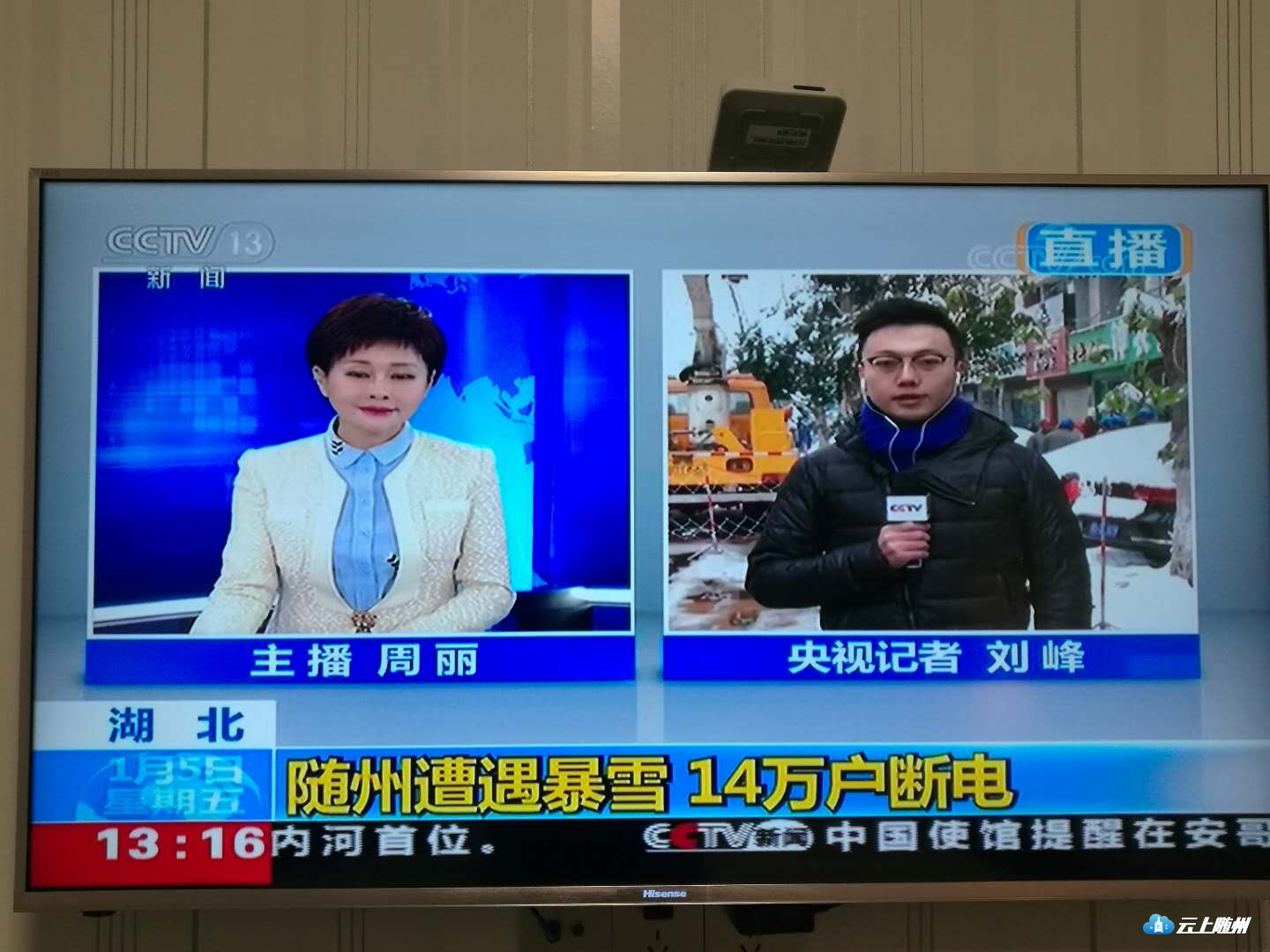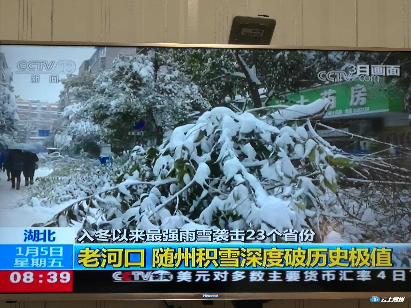 连日的暴雪天气,给我市广大市民生产生活造成了一定影响。灾情发生后,引起了央视、湖北卫视等媒体关注,从昨天早上8点39分开始,央视在早中晚多个时段对我市暴雪情况进行了报道,特别是昨晚的《新闻联播》、卫视联播对相关情况进行了报道。今天央视、卫视还将对我市暴雪受灾后随州众志成城抗灾自救情况进行报道。