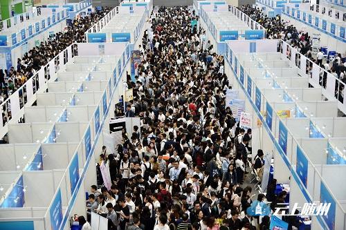 资料图:在深圳会展中心举行的第三届全国高校毕业生春季双选会现场人头攒动 新华社记者 周科 摄