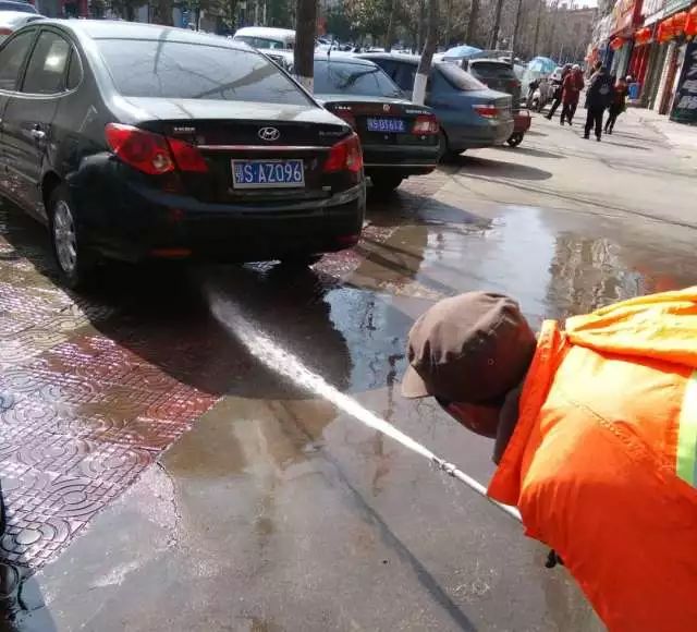 万城美公司组织车辆和人员对汉东路人行通道进行冲洗