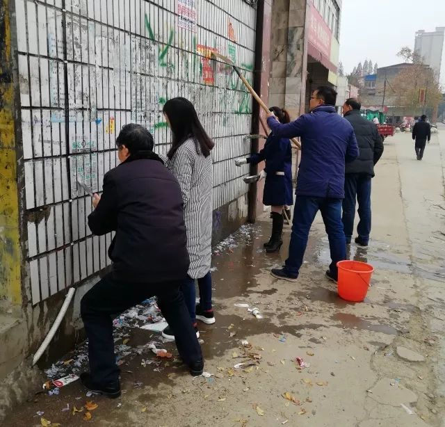 八里岔社区清扫小区路面,清理新增牛皮癣