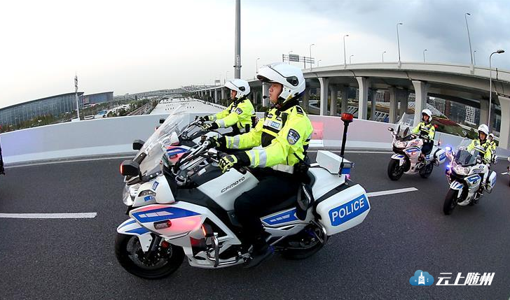 10月30日,上海市公安局闵行分局交警支队摩托化机动车小分队的民警在国家会展中心(上海)附近巡逻。