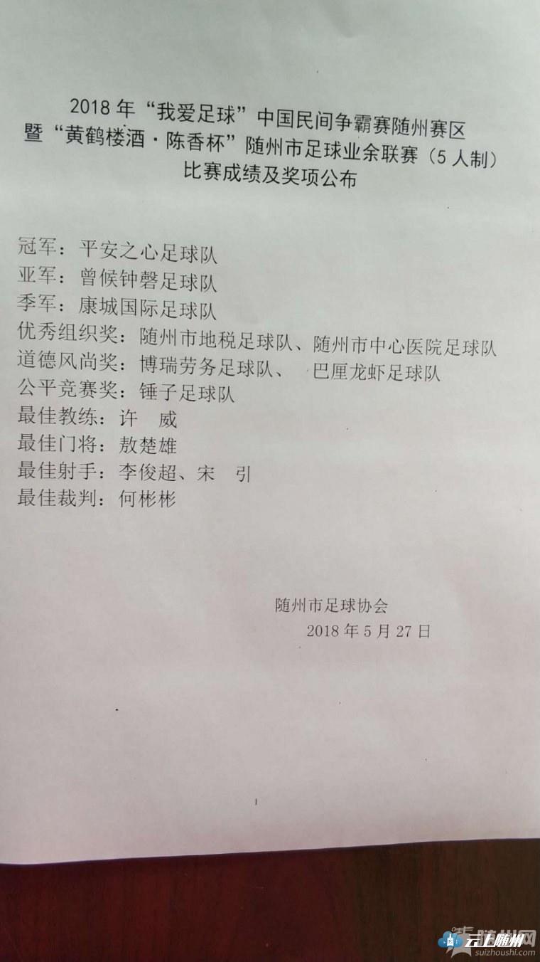 暨“黄鹤楼酒·陈香杯”随州市足球业余联赛(5人制)
