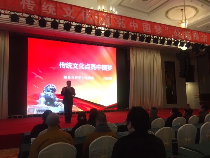 随县是炎帝神农的故乡,是中华文化的发源地,有着丰厚的文化底蕴。为响应习近平总书记弘扬中国传统文化,实现民族复兴,再创中华盛世荣景强国之号召,由随县佛教协会发起,随县神农国际大酒店,随县云峰山神农弟子校园,随县炎帝神农国学馆共同举办,主题为“传统文化·点亮中国梦”,公益传统文化推广交流演讲活动,本次活动特邀无锡广电国学发展公司总经理诺亚国学校长丁素萍女士,无锡市诺亚教育培训中,刘政耀老师主讲。