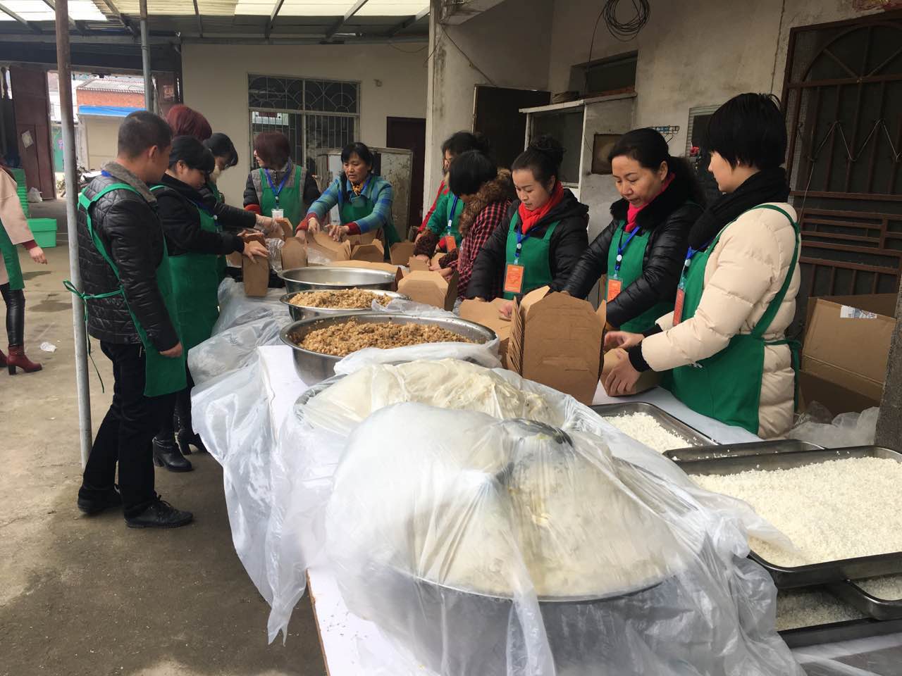 图为义工帮忙准备参会人员的午饭