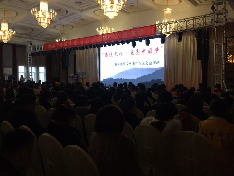 今天上午9点,以“传统文化·点亮中国梦”为主题的随县传统文化公益演讲在随县神农国际大酒店举行,来自省内的760多位传统文化爱好者参加了活动,来自社会各界的140多位义工自愿参与保障了活动的顺利进行。