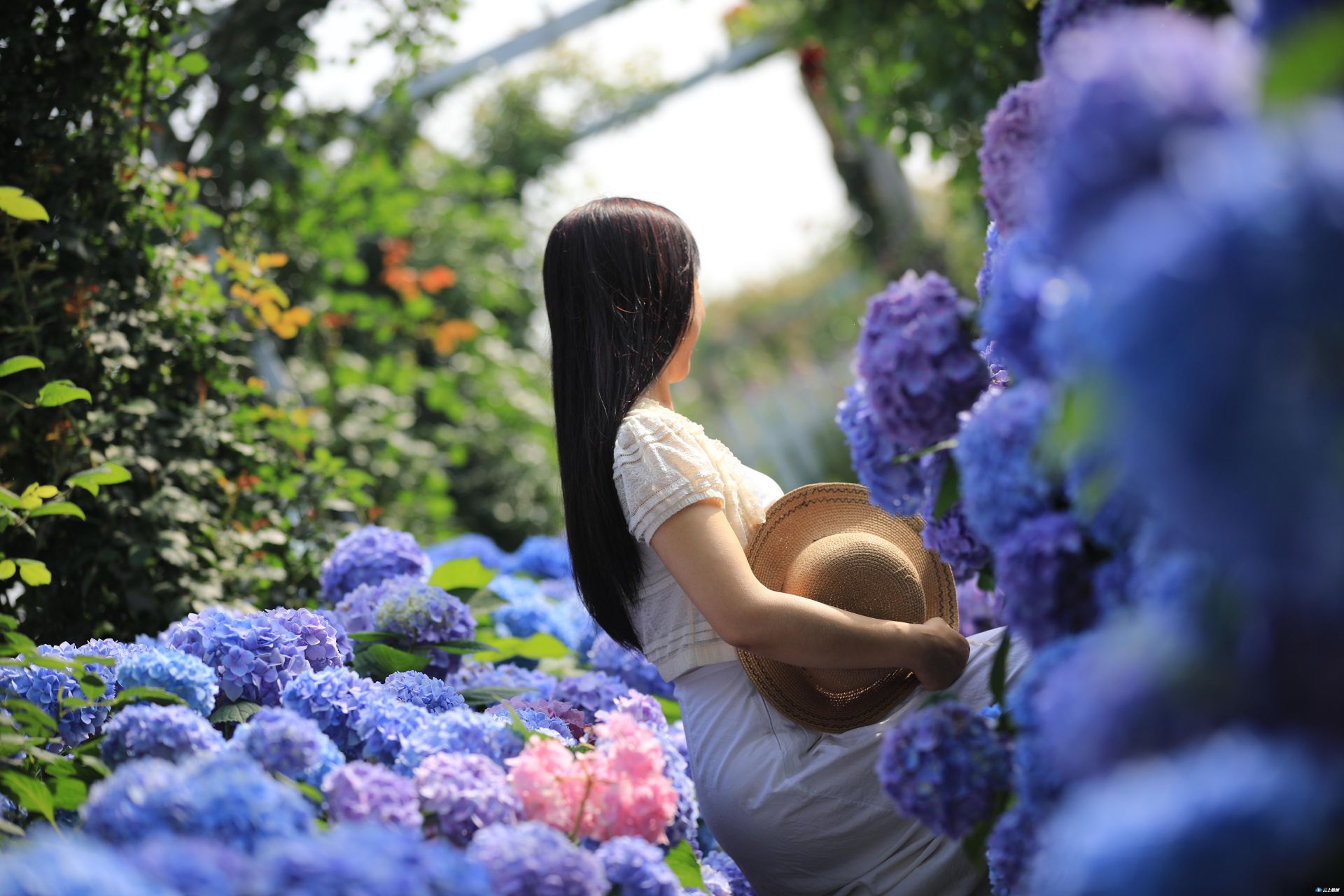小惠调的是蓝紫色。绣球花团团簇簇,丰盈秀美,大片大片的无尽夏,在玫瑰园里,云朵一般摇曳。那种如梦如幻的颜色,仿佛让你回到了小时候,在山野里,从千万棵树的缝隙,缝隙间的碧空下,吹过来的无拘无束的风……这样安静浪漫的颜色,才是夏日里最唯美的色调,也是你心中最钟情的颜色吧?想想哪个不是从些许爱做梦的紫些许忧郁的蓝,走过来的青春年少!