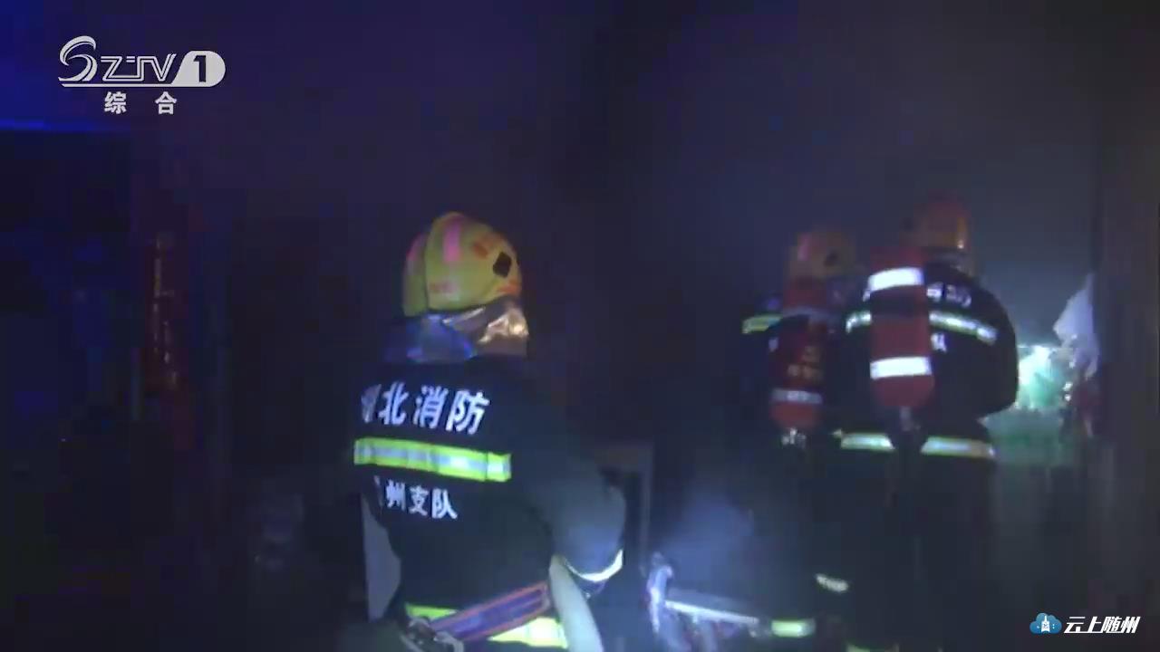 【采访】随州市消防救援支队广水大队参谋 万宁博 经过我们初期的简单调查,以及现场事主的笔录,初步断定是由于今天凌晨的雷雨天气,雷击引起的线路短路起火,引燃冰箱附近的油桶,然后导致火势扩大。