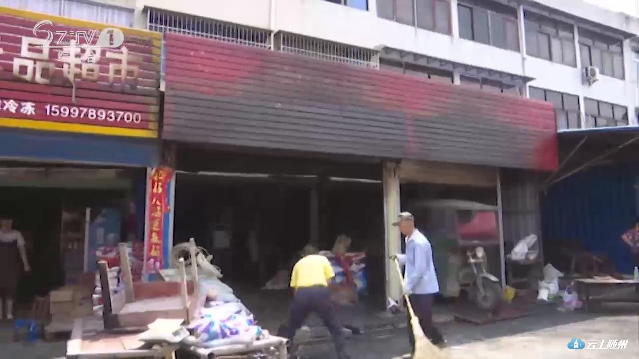 当天凌晨2点36分,随州消防接到报警。2点44分,广水中队到达现场,只见一栋两层楼房的一楼火势猛烈,燃烧范围为2间门面,燃烧面积约为120平方米,且火势正在向左右两侧商铺蔓延,情况十分危急。指挥员迅速下达命令,攻坚组双干线出三支水枪,从左中右对火势进行夹击,同时从正面对火势进行猛攻。经过一个小时的奋力扑救,明火被扑灭。随后,消防人员边转移货物边利用火钩对阴燃部分进行逐步清理,4点27分,现场处置完毕。经询问调查,初步判断是当晚的雷暴天气致使雷电击中电气线路,导致引燃下方放置的食用油,从而引发火灾。