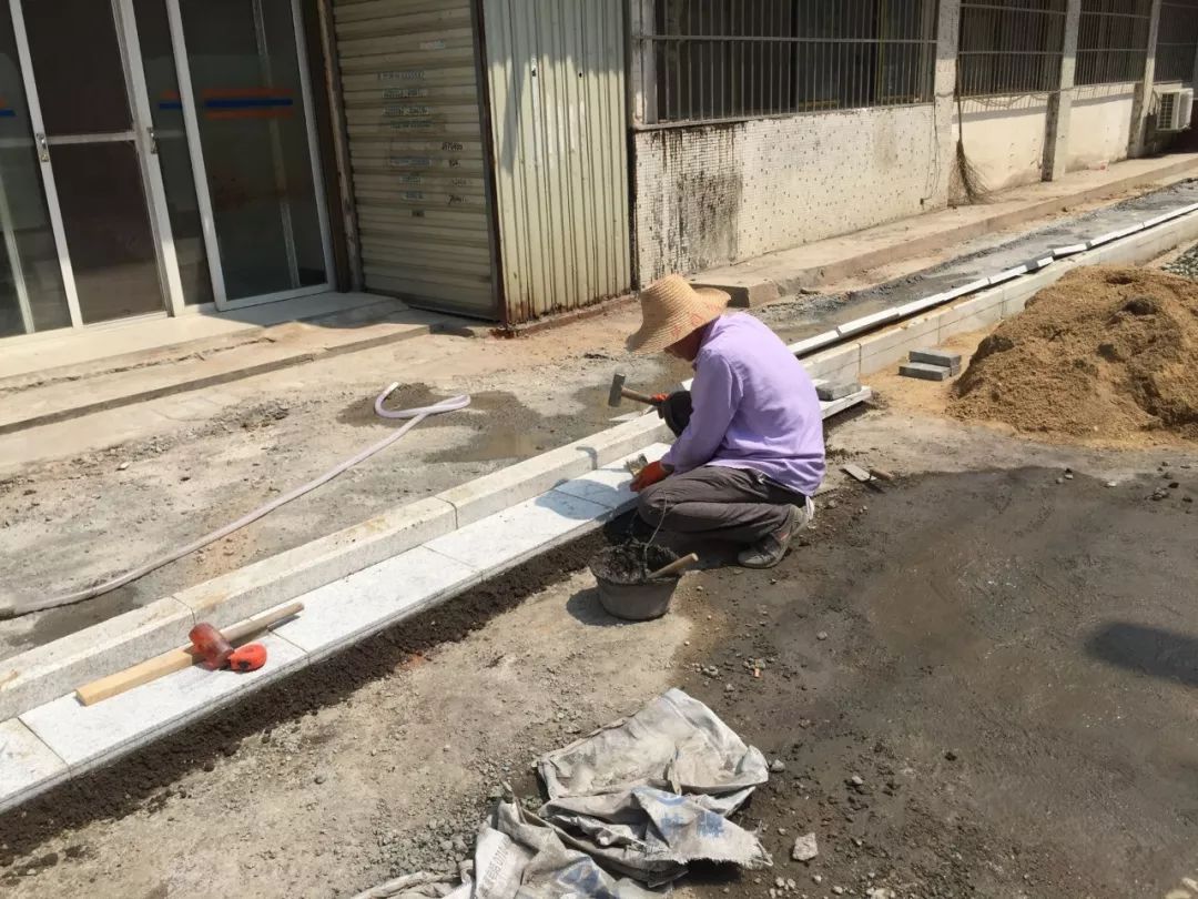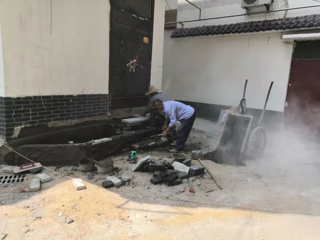 9月3日,校场巷正在进行路沿石铺设、墙面修补工作。
