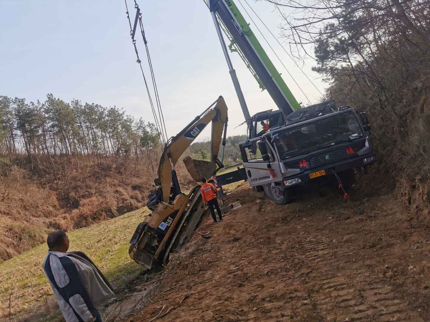 经勘测人员现场了解,工程机械设备损坏严重,司机自救从驾驶室爬了出来,初步估计事故造成直接经济损失在10多万元。因当时事故现场环境限制,救援队的大型救援装备无法靠近,需打通一条救援通道,经过24小时的不间断作业,3月15日9点将救援通道打通,救援队的大型吊机才进入事故现场,由于事故挖掘机体大,经现场救援人员评估分析,需先把挖掘机吊扶正,然后用钢丝绳把它拖吊起,在找专业师傅过来评估修理。