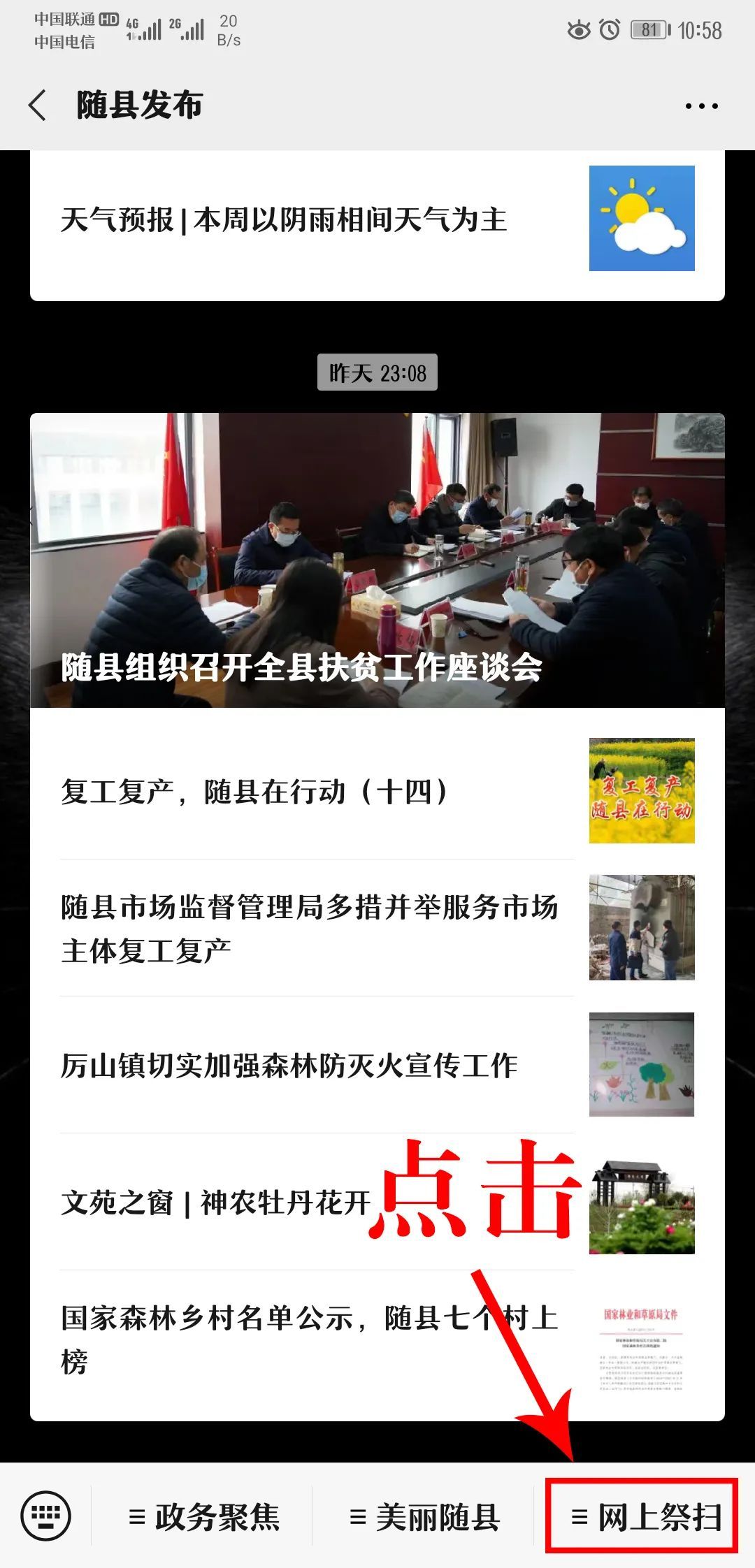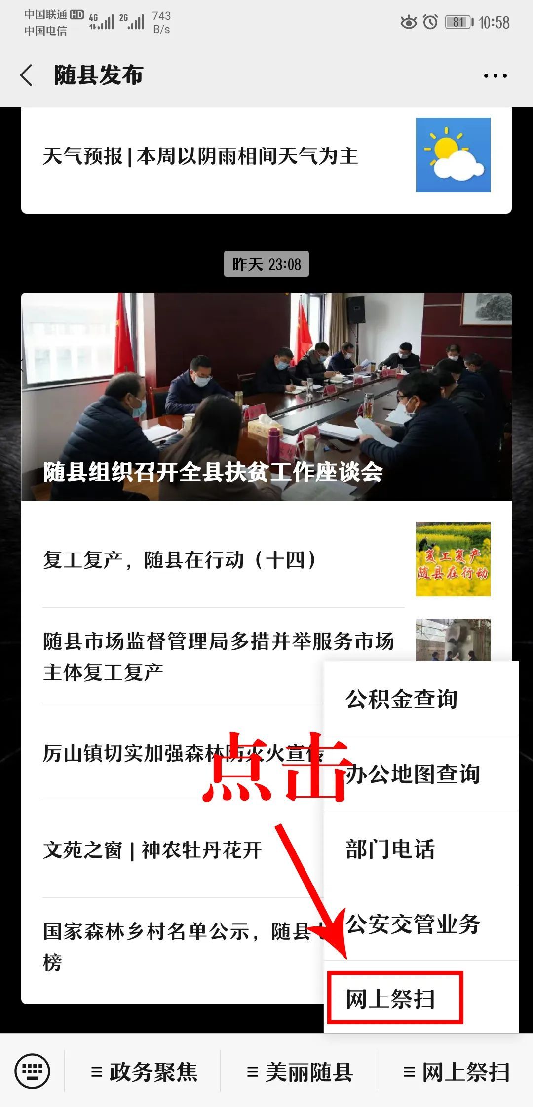 首先打开随县发布微信公众号