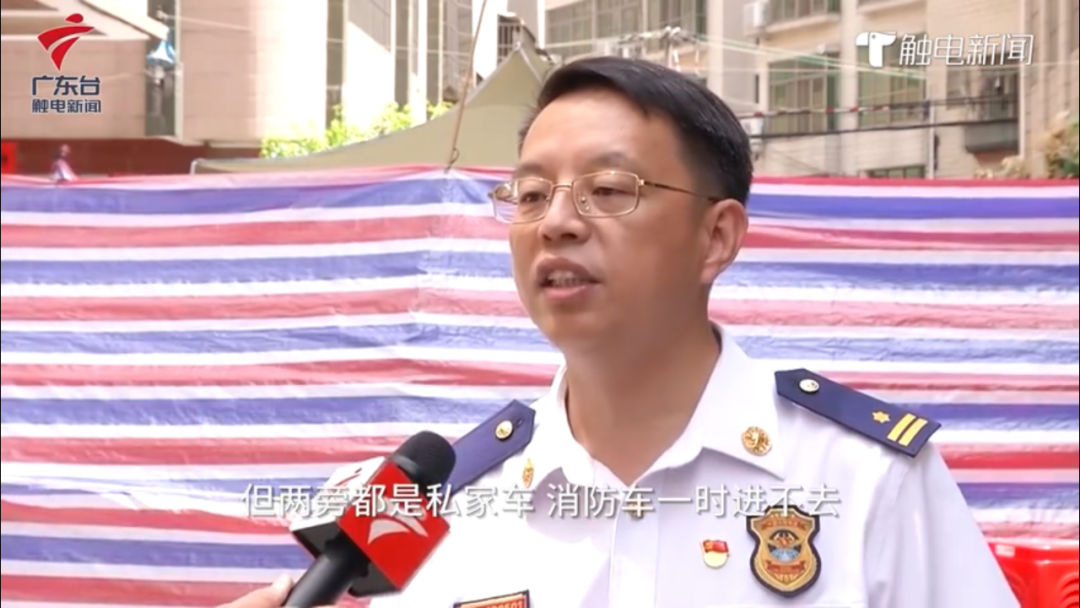 湛江遂溪县消防大队大队长洪振和表示“到达现场后两边都是私家车导致消防车一时进不去”