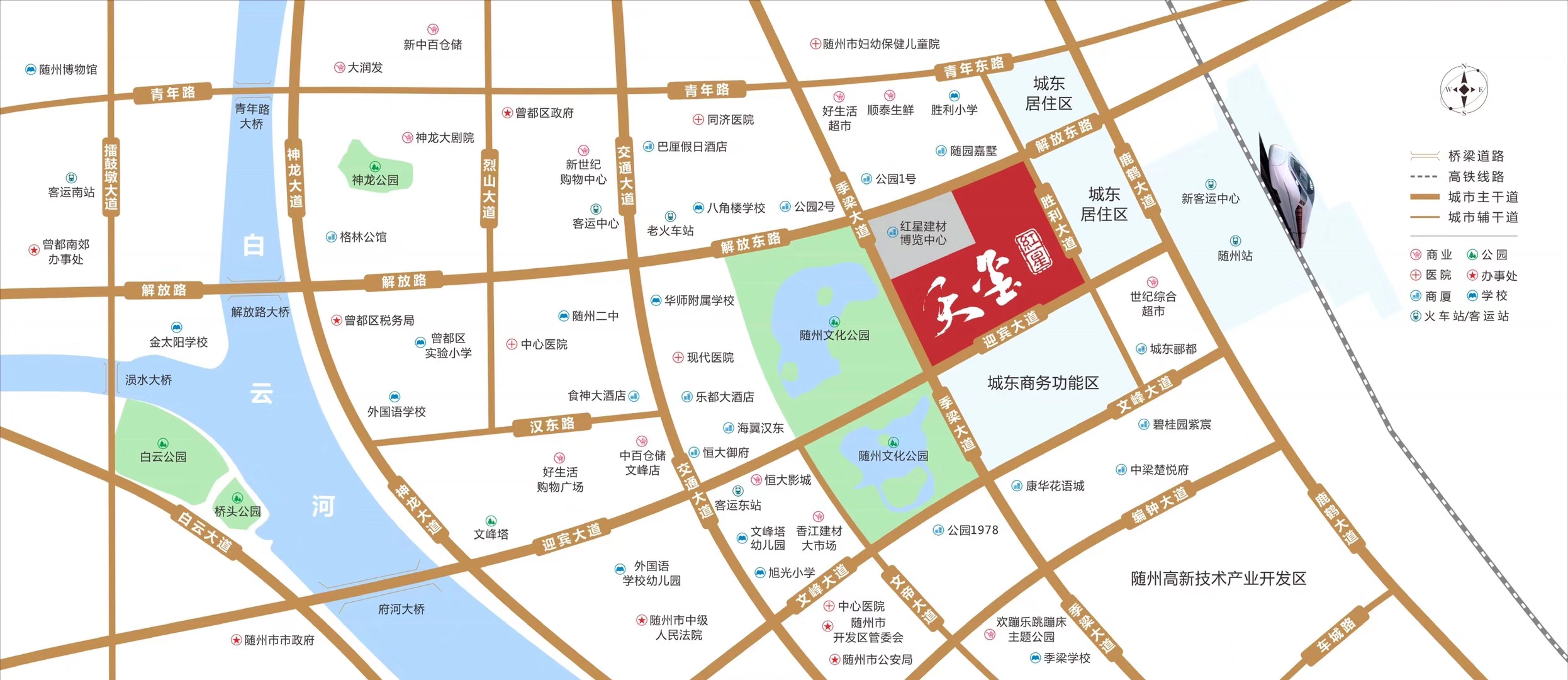 红星天玺位于城东核芯地段,城市主轴迎宾大道之上,1km范围内汇集新火车站、新客运站两大交通枢纽,城市公交等全方位满足出行需求。