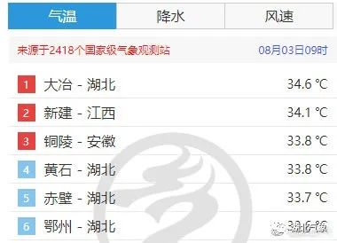 全国气温榜湖北大冶