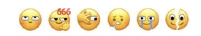 「翻白眼」「666」「让我看看」「叹气」「苦涩」「裂开」……