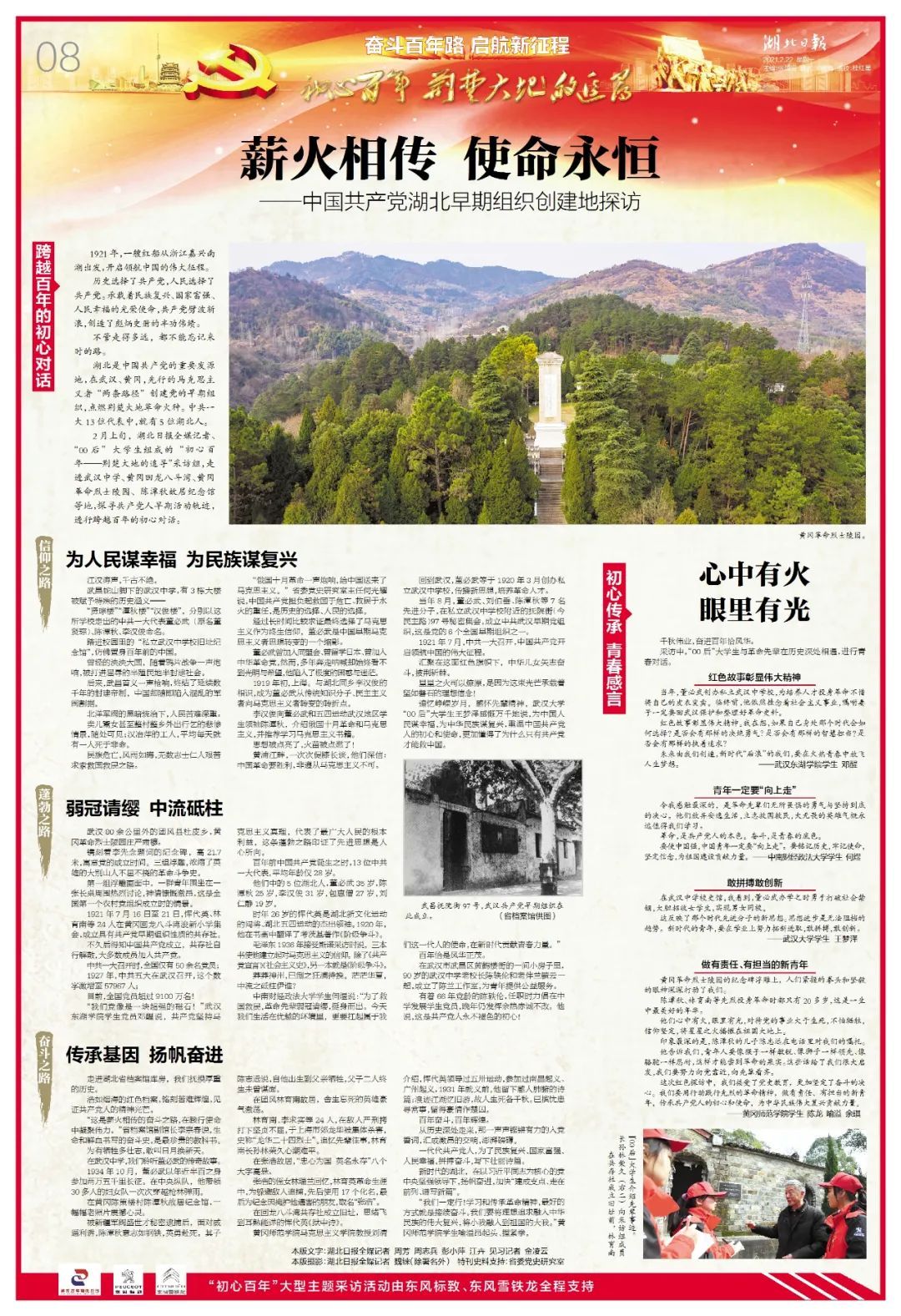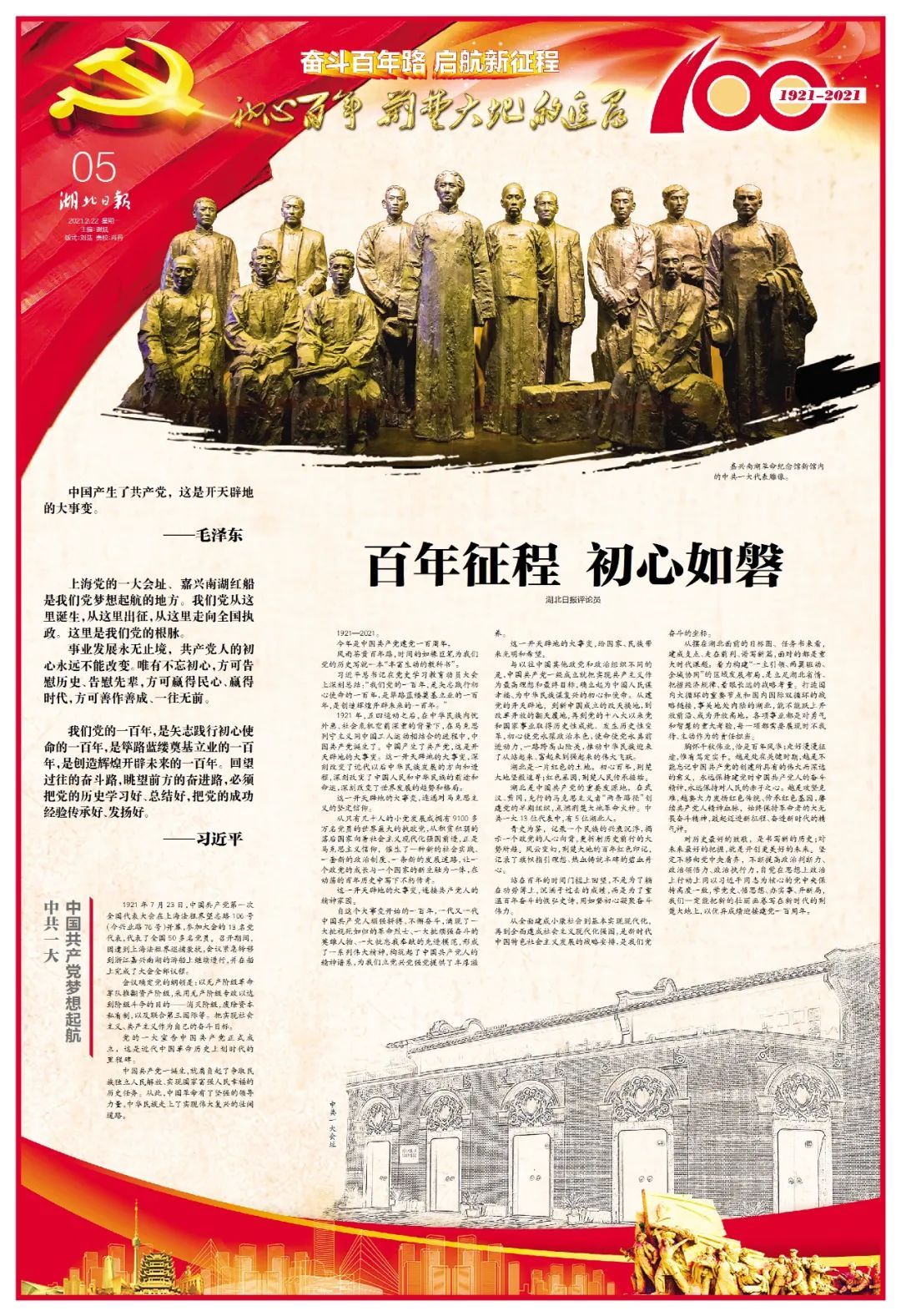 奋斗百年路,启航新征程湖北日报今起推出庆祝建党100周年大型主题报道“初心百年——荆楚大地的追寻”向党的百年华诞献礼