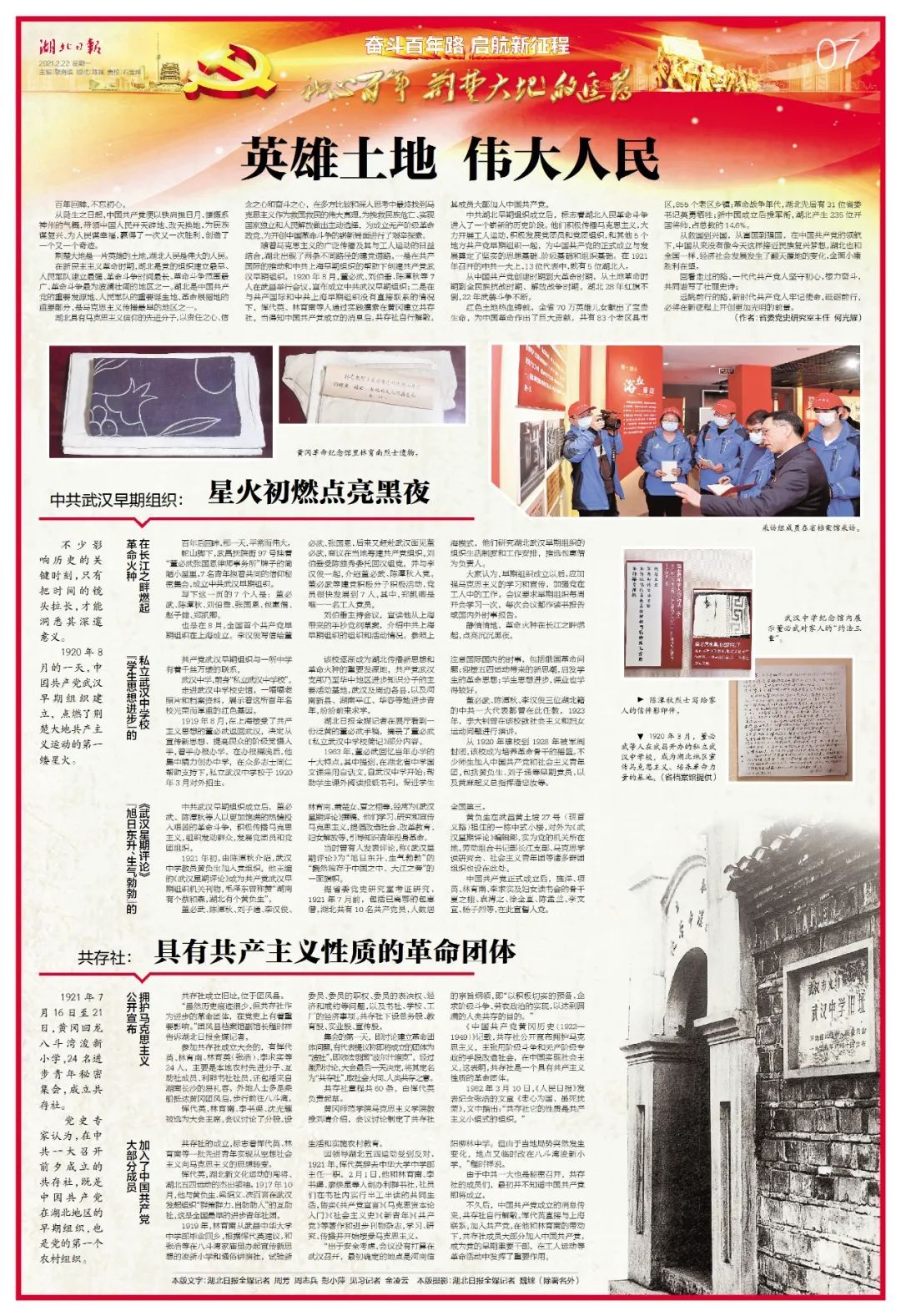 今天起,本报将持续刊发系列报道,浓墨重彩呈现荆楚大地波澜壮阔的百年奋斗史诗,推动大力发扬红色传统、传承红色基因,赓续共产党人精神血脉,推动党史学习教育深入群众、深入基层、深入人心,凝聚迈进新征程、奋进新时代的精神力量。同时,湖北日报全媒体平台矩阵也将多渠道、全方位推出延伸报道。