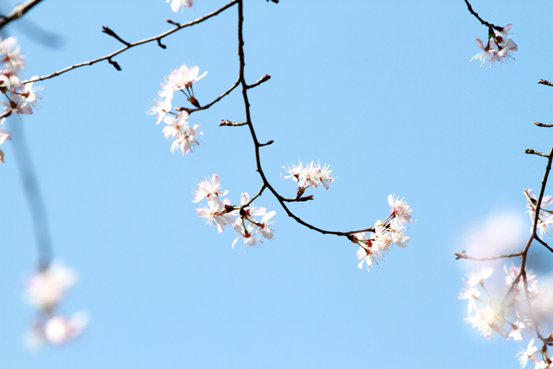 细细的枝条上樱花朵朵