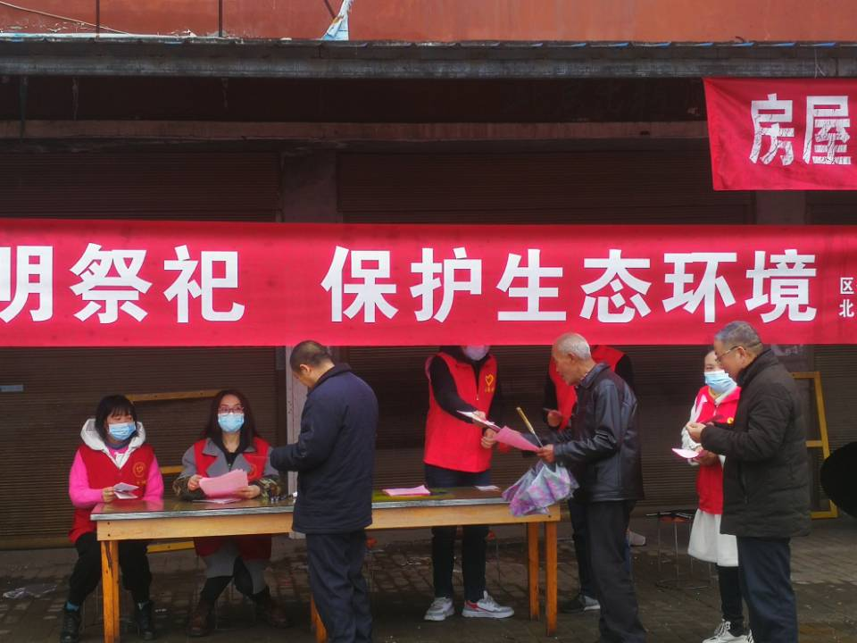 4月2日,北郊街道碾子巷社区组织志愿者发放“清明文明祭祀倡议书”,倡导广大居民鲜花祭奠,植树祭奠,树立环保意识,维护优美整洁的城乡环境。(裴先梅)