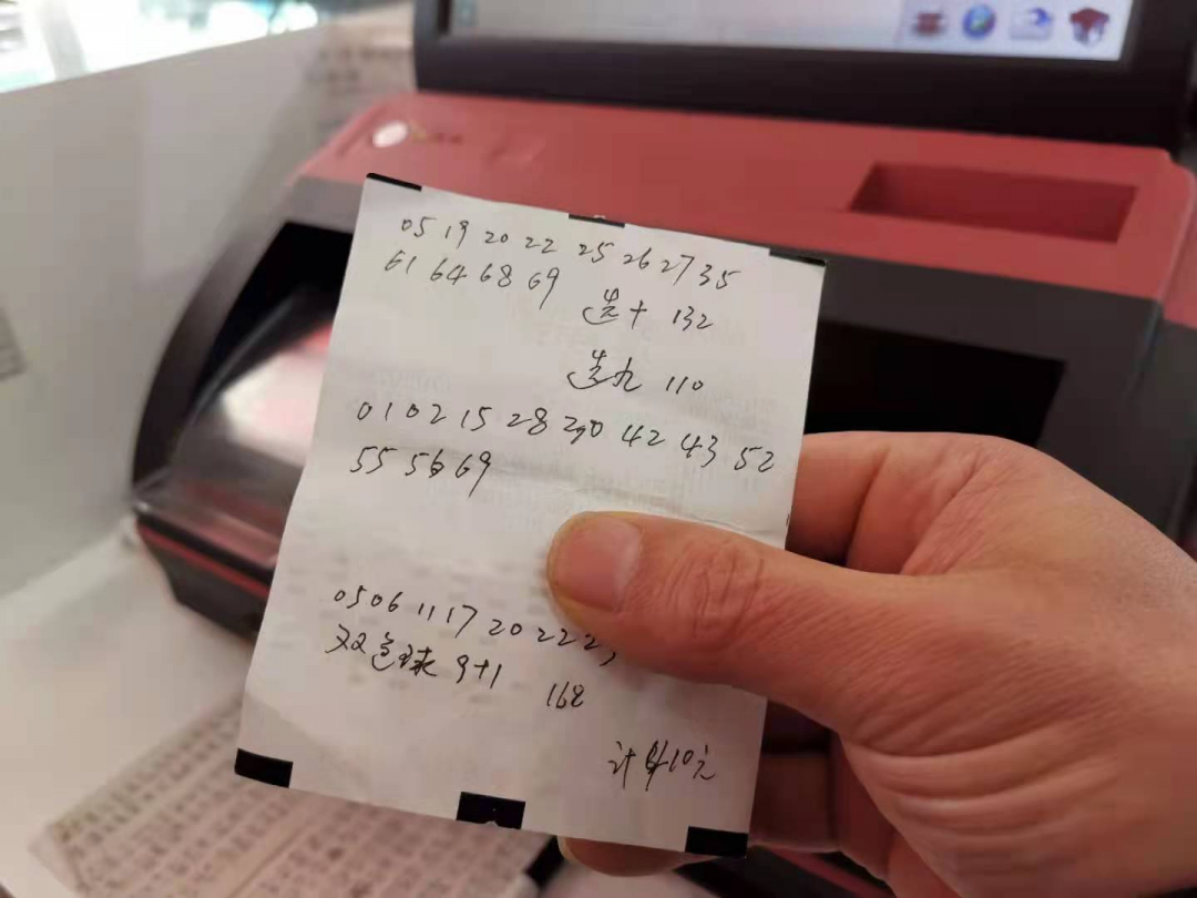 【采访】店主 谢训国:我当时看的号有些多,看了12个。第二天我也在等这样的人来买,说实话,很多彩民拿不了这么多钱出来买这个号,最后有人来找我要号,我就把这个号提供给他,并且选十选九提供出来,以及双色球的九加一提供出来,他买了,买了之后像缘分一样他中了,昨天通知我们站点中了,我还有点不相信,我一看我推的号还可以,自己把这个底子拿出来和开奖号一对,他十个都中了。