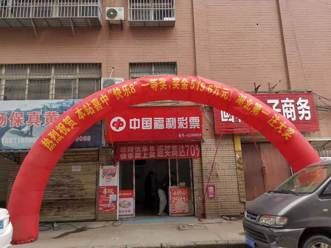 今天上午,记者来到交通大道福利彩票42280033站点,门口竖立了彩虹门,上面写着“热烈祝贺本站喜中快乐8一等奖,奖金519.6万元!湖北第一注大奖”的好消息,吸引了不少路过市民的目光。店主谢训国介绍,这个奖是昨晚九点半开出来的,没想到湖北省第一注“快乐8”一等奖被自己店里的彩民中得,很是高兴。