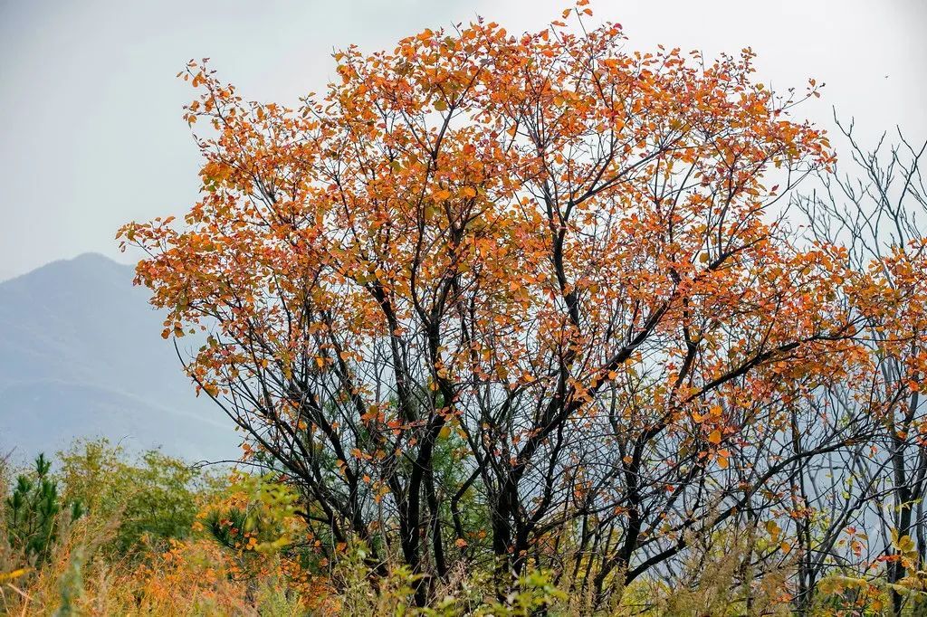 红叶、黄叶、绿叶相间生长,枝枝叉叉交缠在一起,互不分离。山道漫步,林间静坐,满目色彩缤纷,任岁月惊扰,时光流逝。