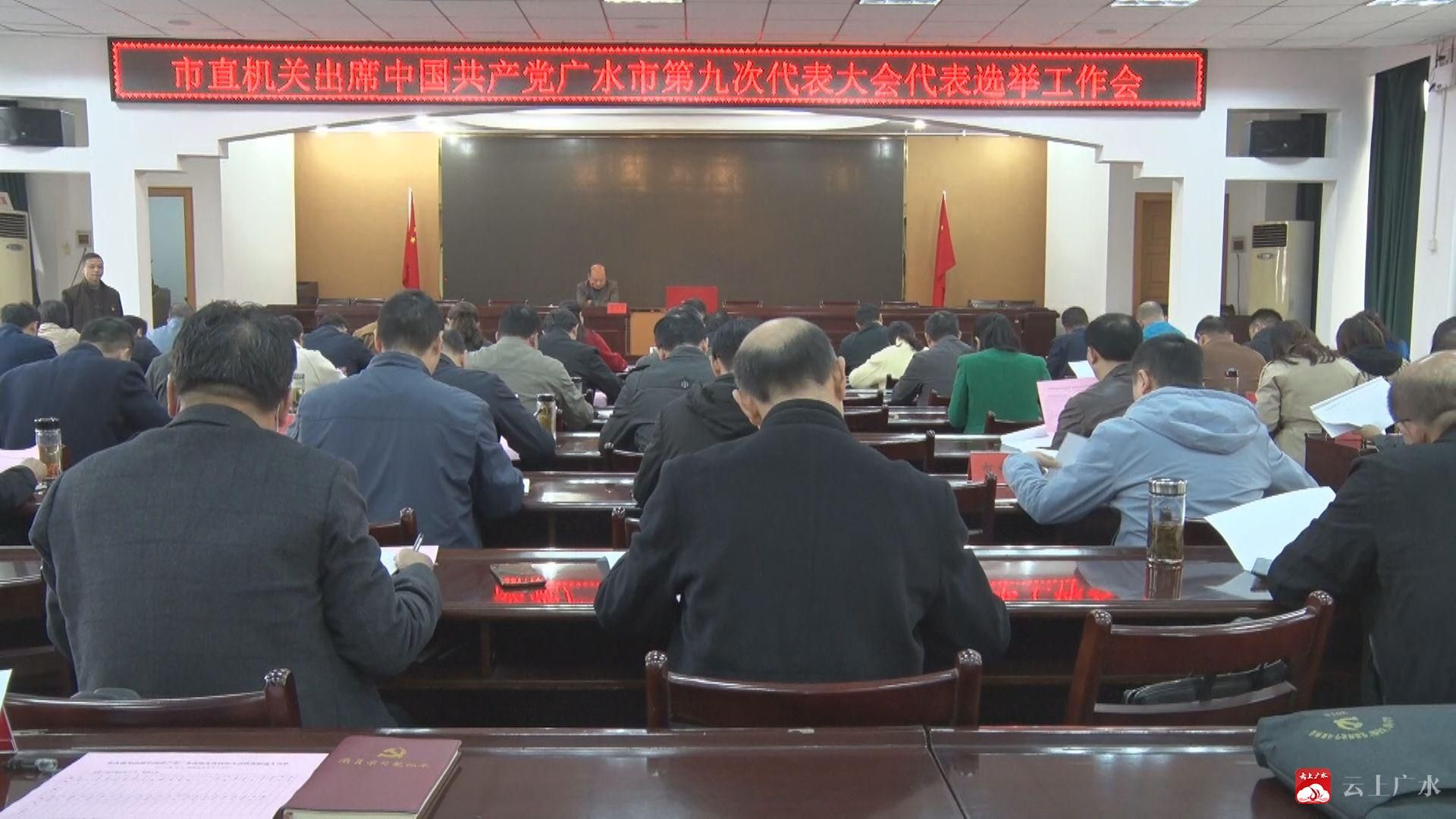 10月19日,广水市直机关出席中国共产党广水市第九次代表大会代表选举工作会,会议选举产生70名出席中国共产党广水市第九次代表大会代表。