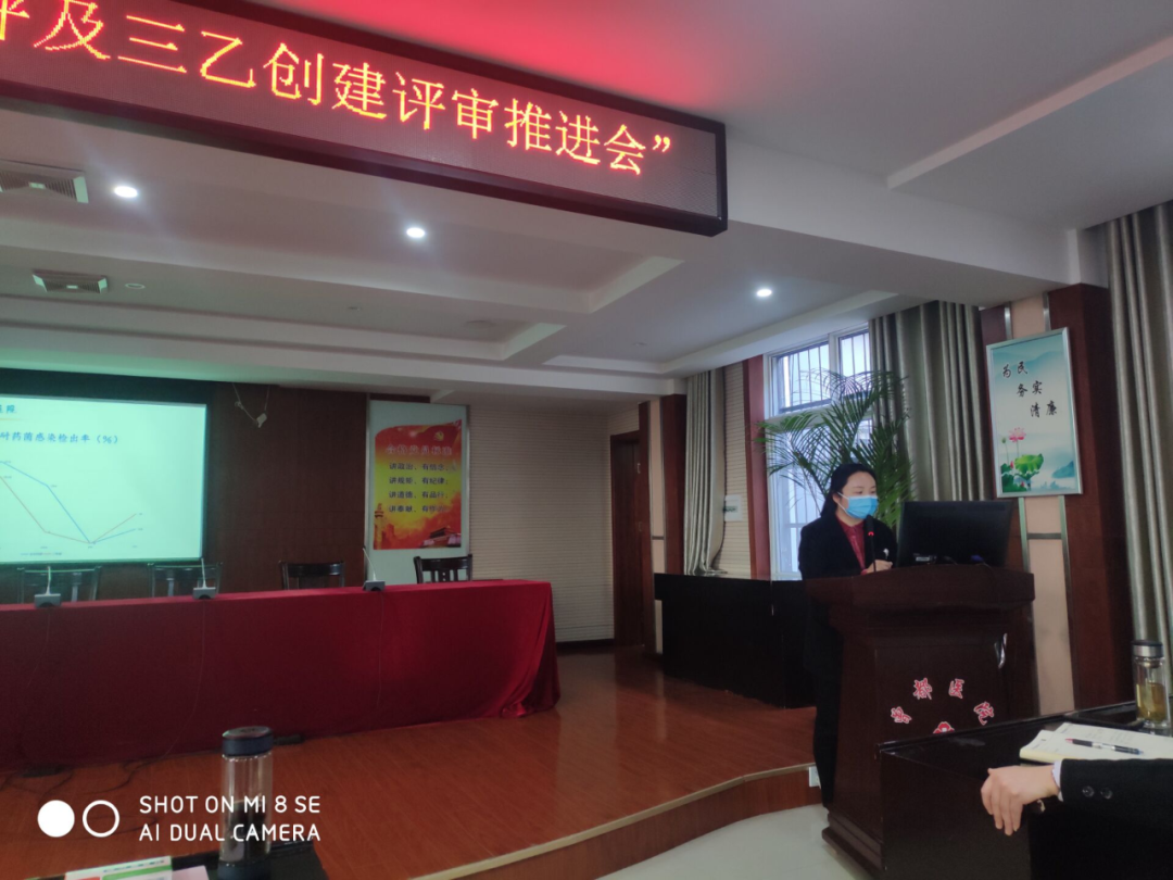 相关职能科室工作汇报完毕后,副院长王小林对各部门在“三乙”创建中存的问题重点提出,限期改正,并通过举例引导各部门负责人如何有效的完成各类监测数据。