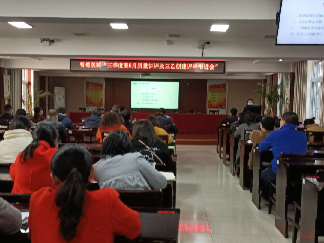 为抓紧抓严抓实医院全面质量管理,推动“三级乙等”综合医院创建工作,10月25日,随州市曾都医院召开全院第三季度质量讲评暨“三乙”创建推进会。院领导班子及全体中层干部参加会议。