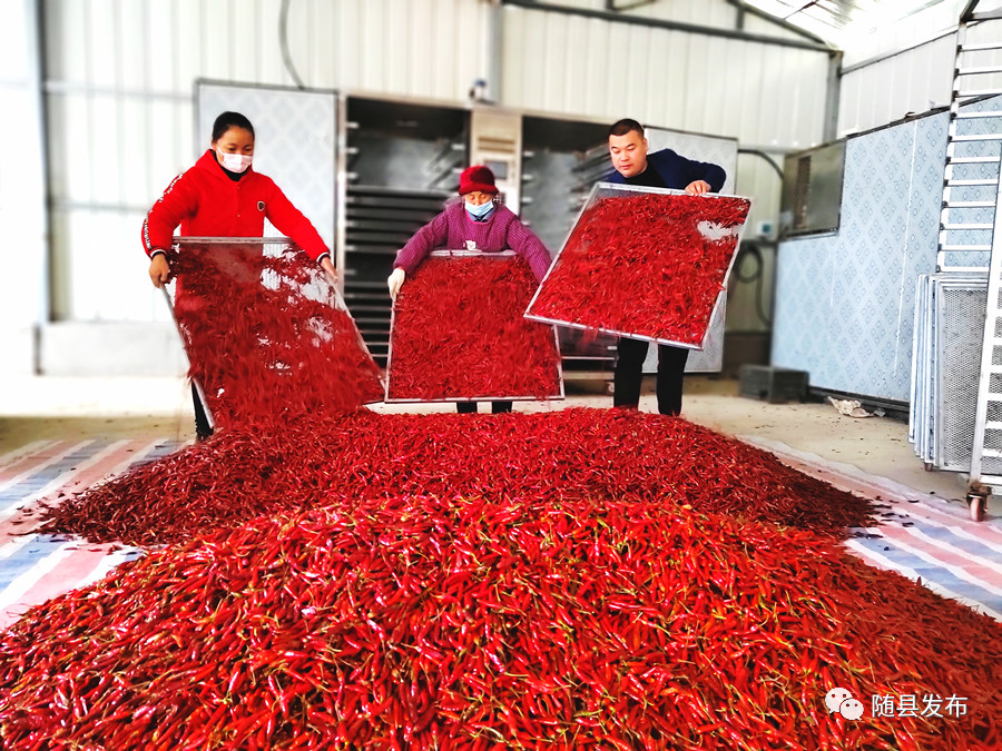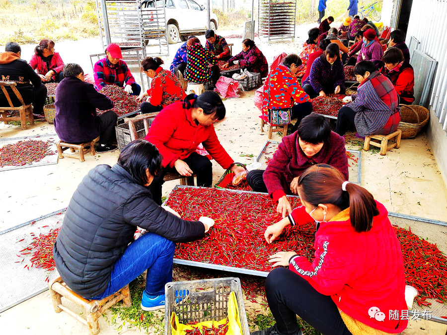 “每天早晨3点多就起床喂猪,忙完家务,就赶去采摘辣椒。”刘玉华说,“老板不嫌我们年龄大,每天还付100元工钱。”“最高峰时,每天有60余人参与采收辣椒、分拣、烘干、打包工作。”杨家义今年70岁,家住10组杨家畈,是辣椒生产基地的临时负责人,从种、管到收,他负责按工作量大小,召集村民按技术要求完成工作任务,并负责记工、分发劳动报酬。他说:“参与辣椒基地劳动的村民最多工时达70个,按每天100元计算,可收入7000元,最少也有10个工日,这些老年人在家门口参与基地管理获得工资都很高兴。”