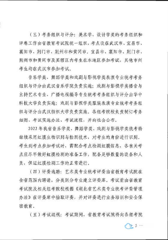 湖北日报全媒记者注意到,教育部日前已印发通知,对规范做好2022年普通高校部分特殊类型考试招生工作作出部署。其中提到,省级招生考试机构要积极创造条件增设艺术类专业省级统考科类,鼓励省际间联合组织省级统考,扩大省级统考专业范围。高校要进一步减少艺术类校考专业范围。高校部分艺术类专业确需组织现场考试的,应积极采取线上考试或使用省级统考成绩进行初选等方式,严格控制现场考试规模。鼓励高校在初选时加强考生文化等综合素养考核。
