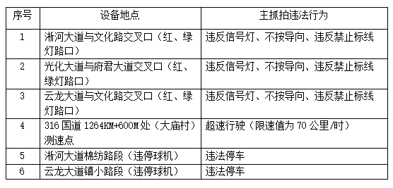 为了加强交通秩序管理,进一步规范行车秩序,预防和减少交通事故的发生,保障人民群众安全出行。根据《中华人民共和国道路交通安全法》及相关规定,科学、合理、依法规范非现场执法工作,经报备审批,决定对淅河镇区6处交通技术监控设备升级并于2021年12月1日零时起正式启用,主要对机动车闯红灯、不按导向通行、违反禁止标线、违反禁令标志、超速行驶等交通违法行为自动抓拍取证。