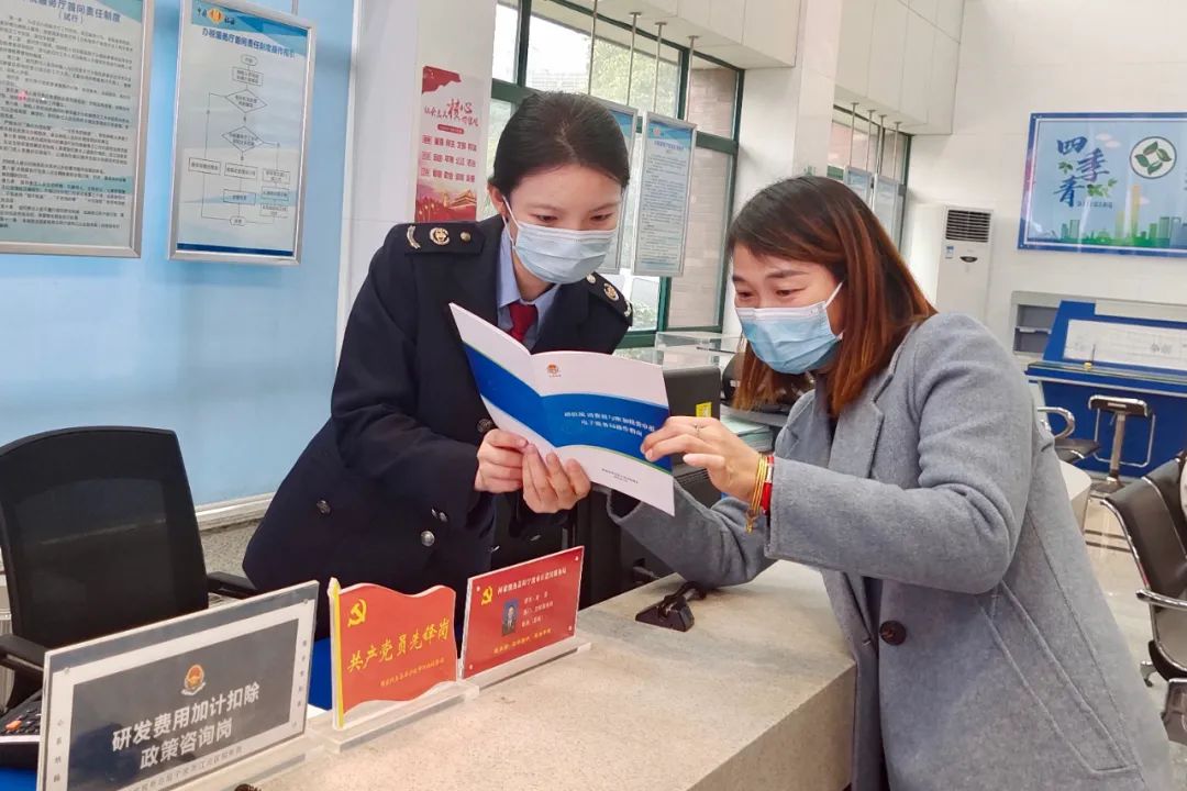 图为国家税务总局宁波市江北区税务局专门设立的“研发费用加计扣除”咨询专窗,为纳税人答疑解惑,帮助企业精准享受税费优惠政策。