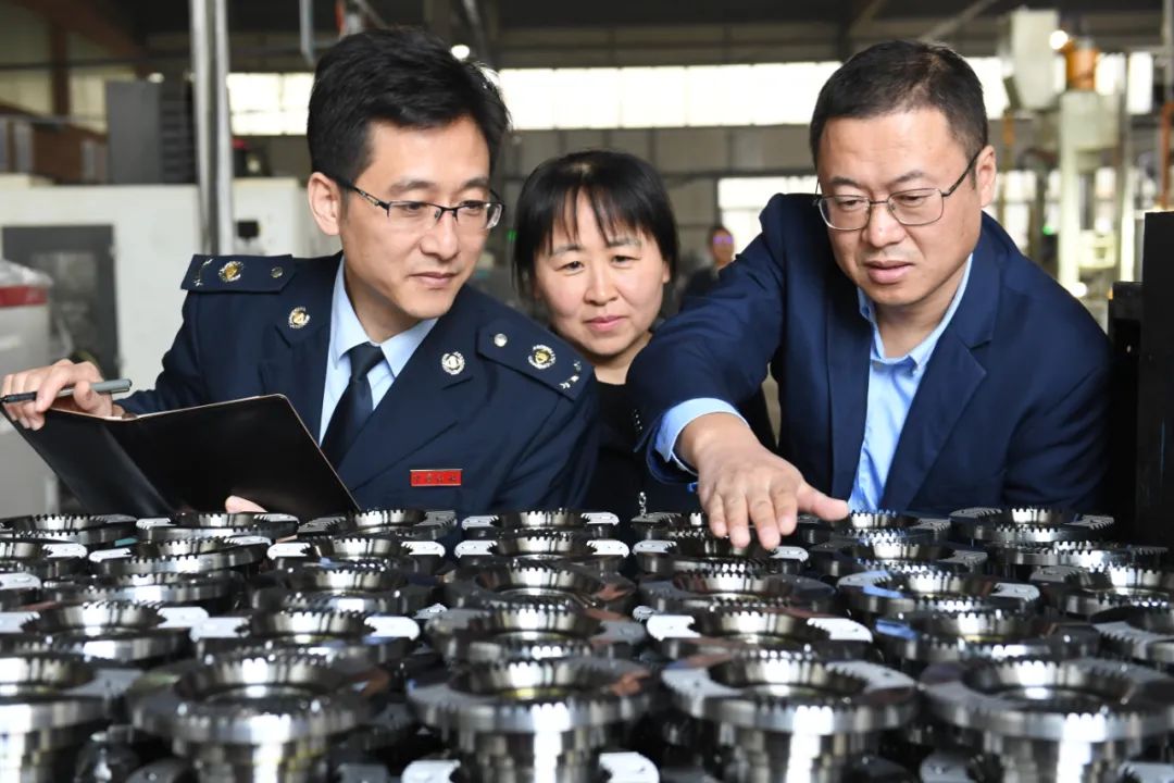 图为国家税务总局济南市历下区税务局干部到理文科技(山东)股份有限公司了解产品出口情况,辅导企业享受出口退税优惠政策。程潇/摄