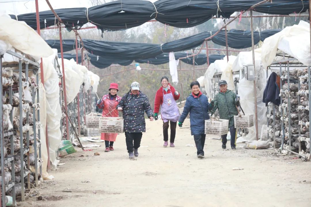 12月2日,在冬日暖阳的照耀下,正是出菇的好时节。殷店塔儿山香菇现代化种植基地内一袋袋菌棒上下整齐排列,村民杨芬和20多人穿梭于菇棚间忙着采摘花菇,她笑着说:“因为离家不远,早上送完孩子上学,就过来采摘花菇,从现在开始工作预计可以干到明年4月份,带娃儿挣钱两不误,大家都很开心。”