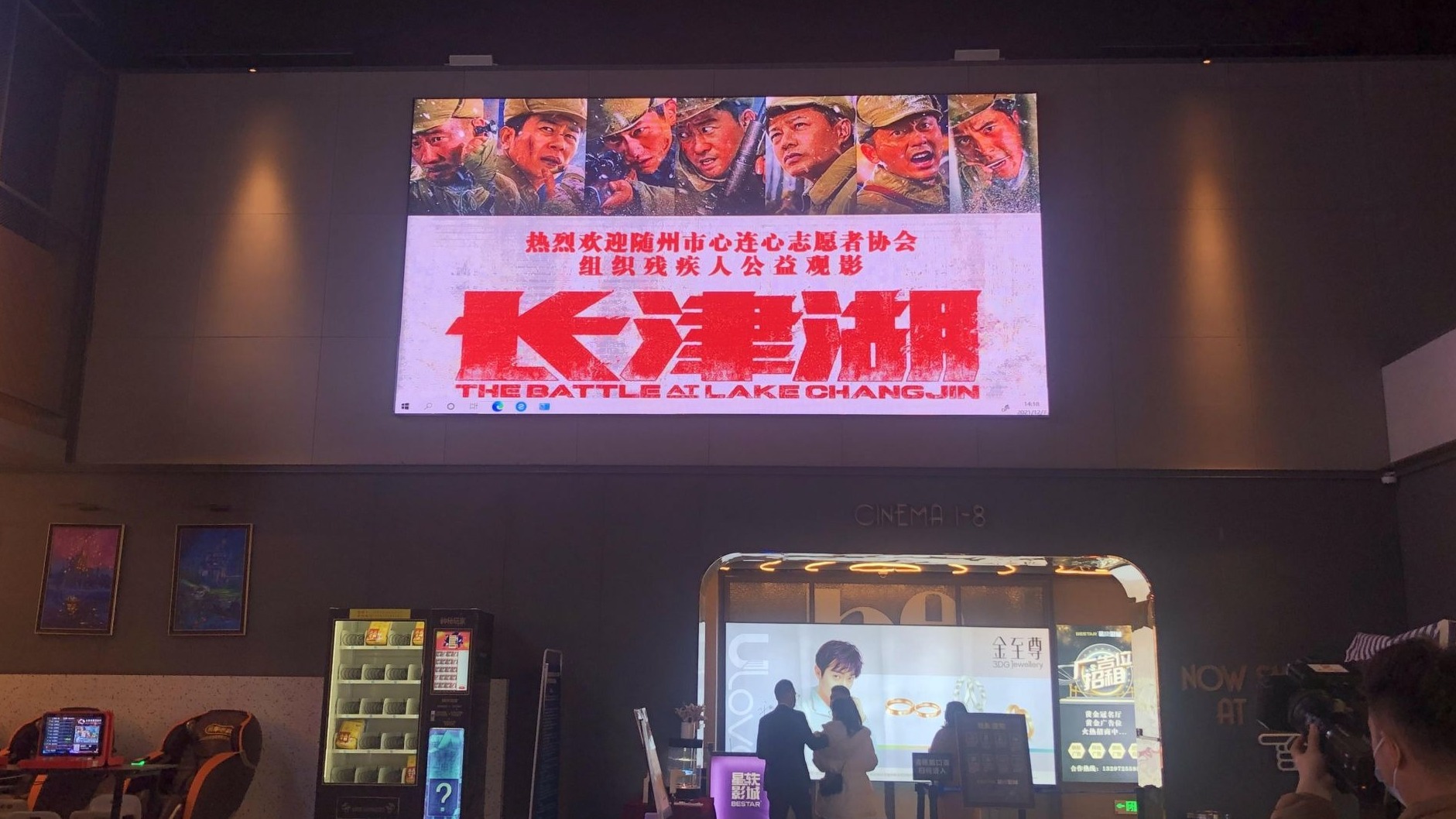 12月7日,我市心连心志愿者协会组织部分残障人士走进影院,观看红色电影《长津湖》。