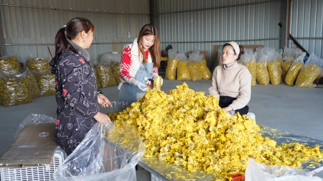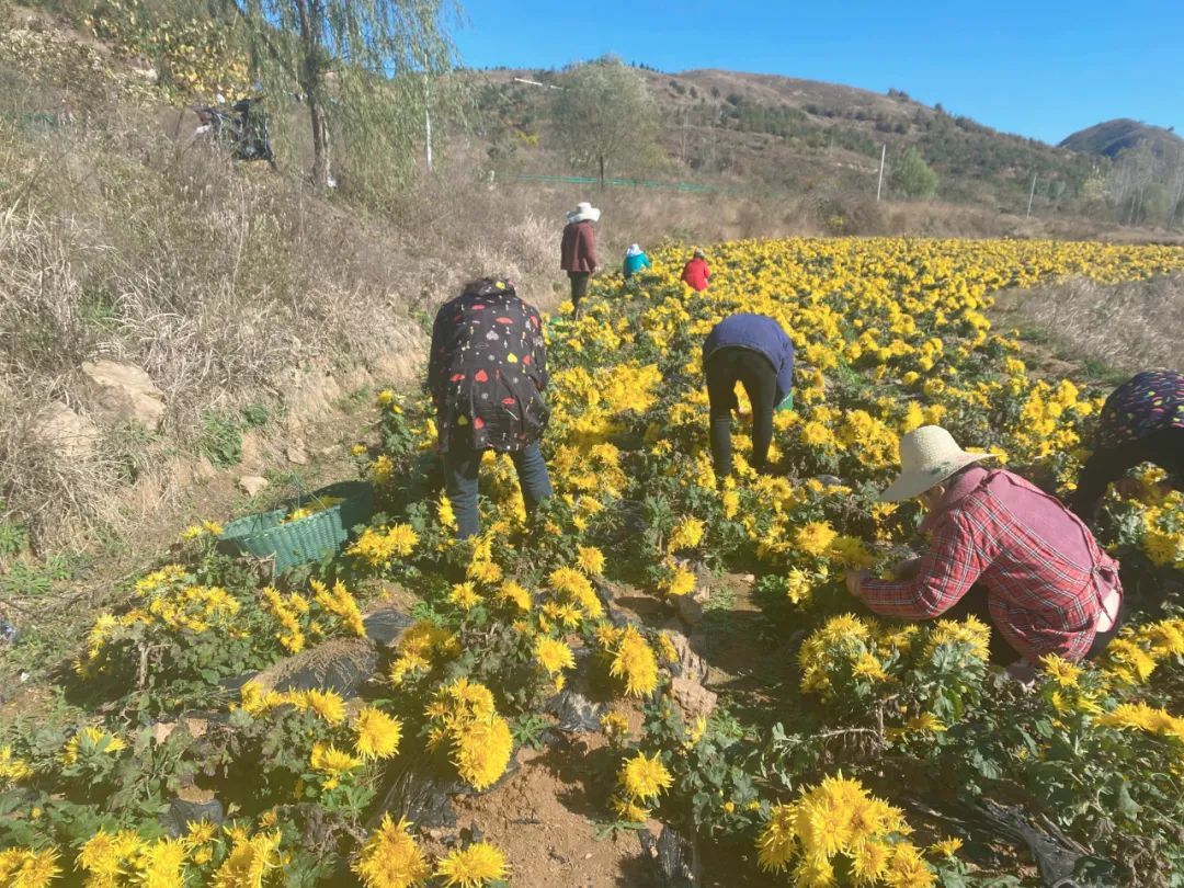 合作社采取“村集体+合作社+农户”的模式,实行菊花种植、采摘、加工一体化生产,带动附近村民就业增收50多人,为村集体增收5万元。