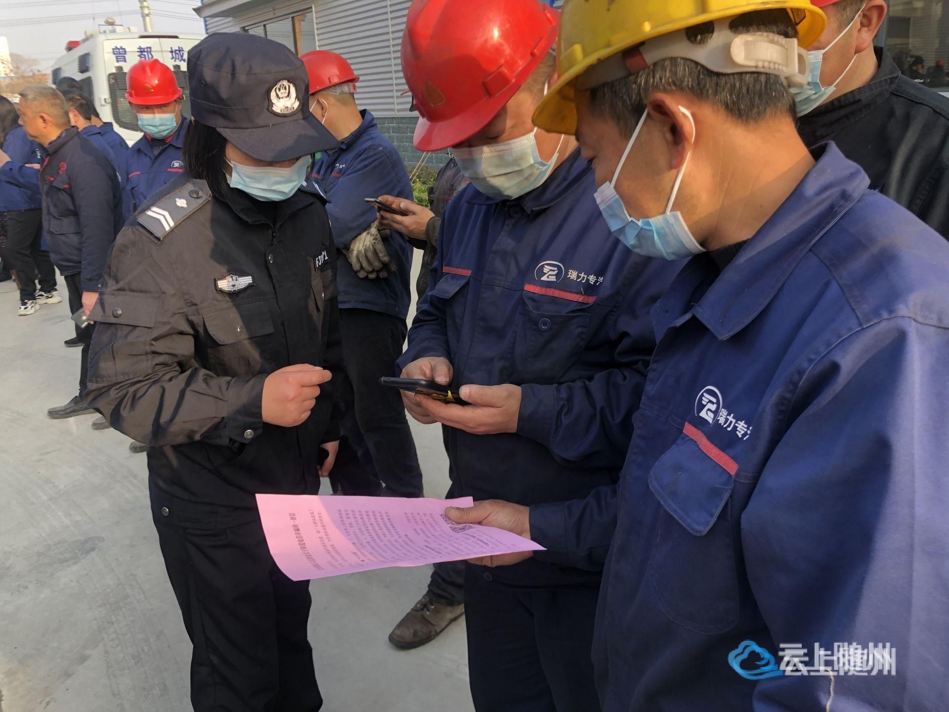 民警现场宣讲当前企业较常见的网络诈骗形式,播放由北郊派出所制作的电信防诈小知识音频,让防诈知识入脑入心。