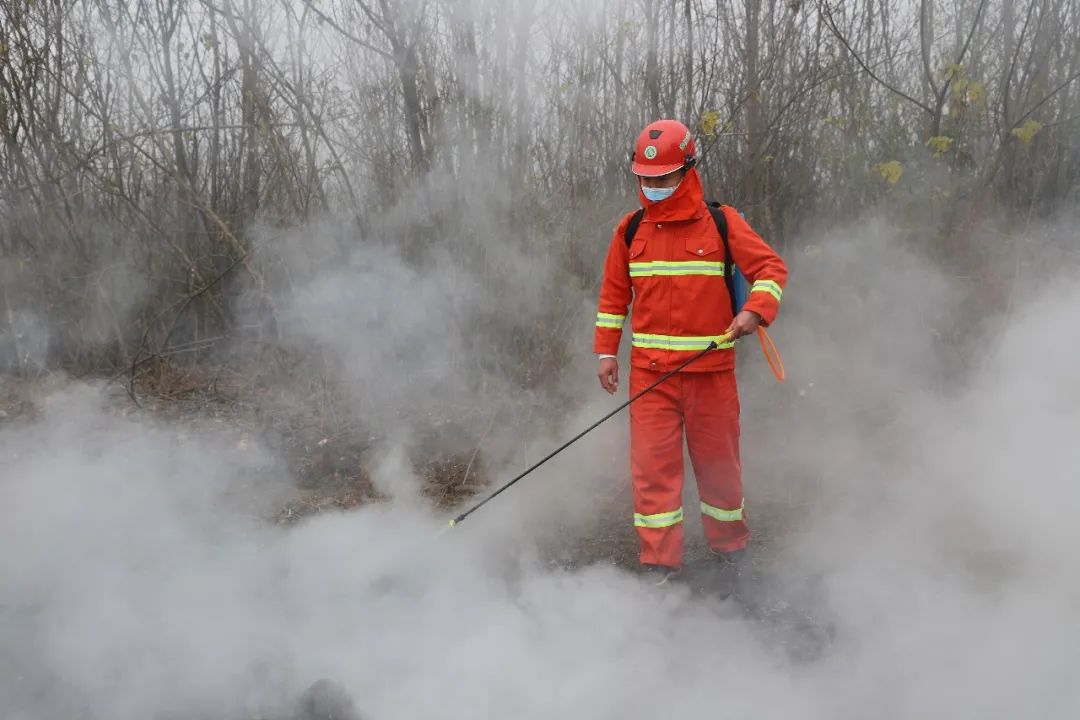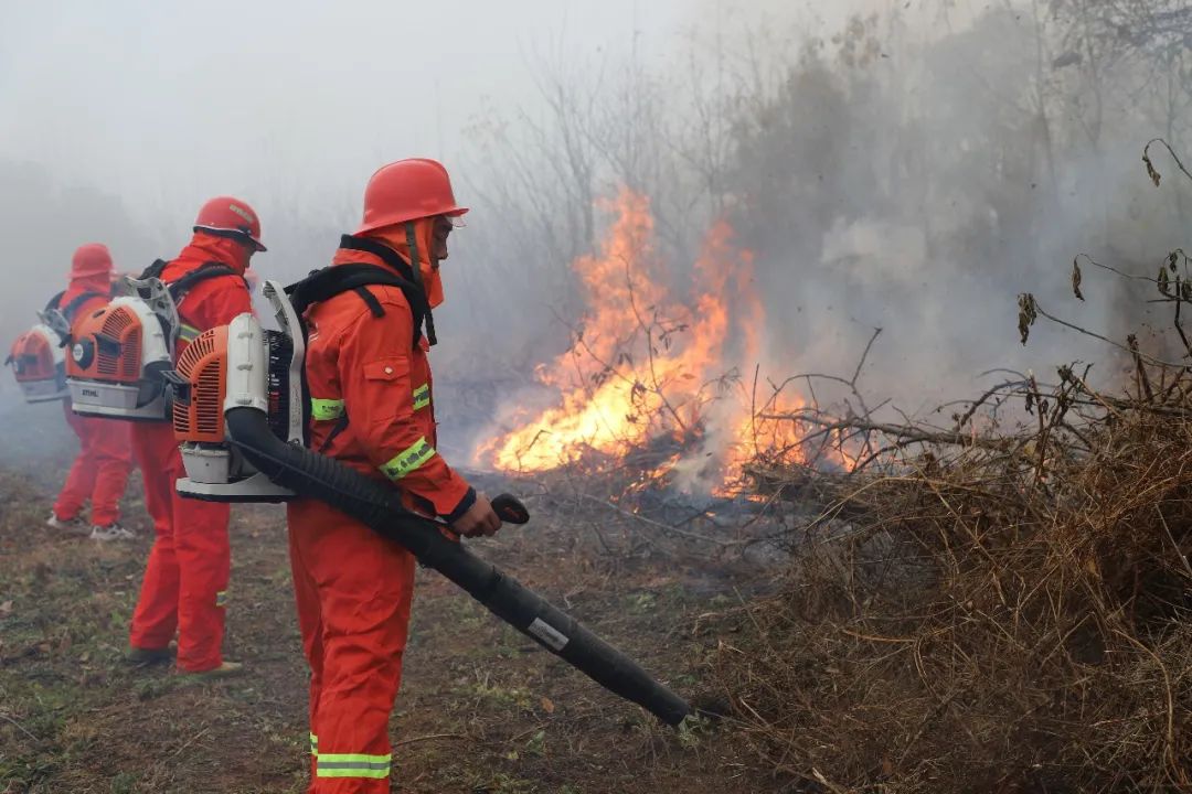 演练现场,队员运用风力灭火机、灭火拖把等扑火器具,快速、安全、有序地进行了森林火灾模拟扑救,全面提升森林防火队伍应急处置及防扑火能力。