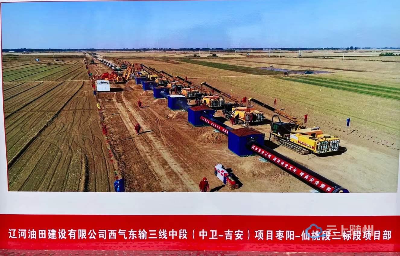 西气东输三线中段(中卫一吉安)项目全长258.3km,管线途经枣阳市、随州市、京山市、天门市、仙桃市5个县市,线路第二标段整体位于随州市随县,全长55.99Km (含1条大型溃水河穿越,2条大洪山隧道穿越),整个工程项目于2021年10月15日开工,将在2022年10月15日竣工。