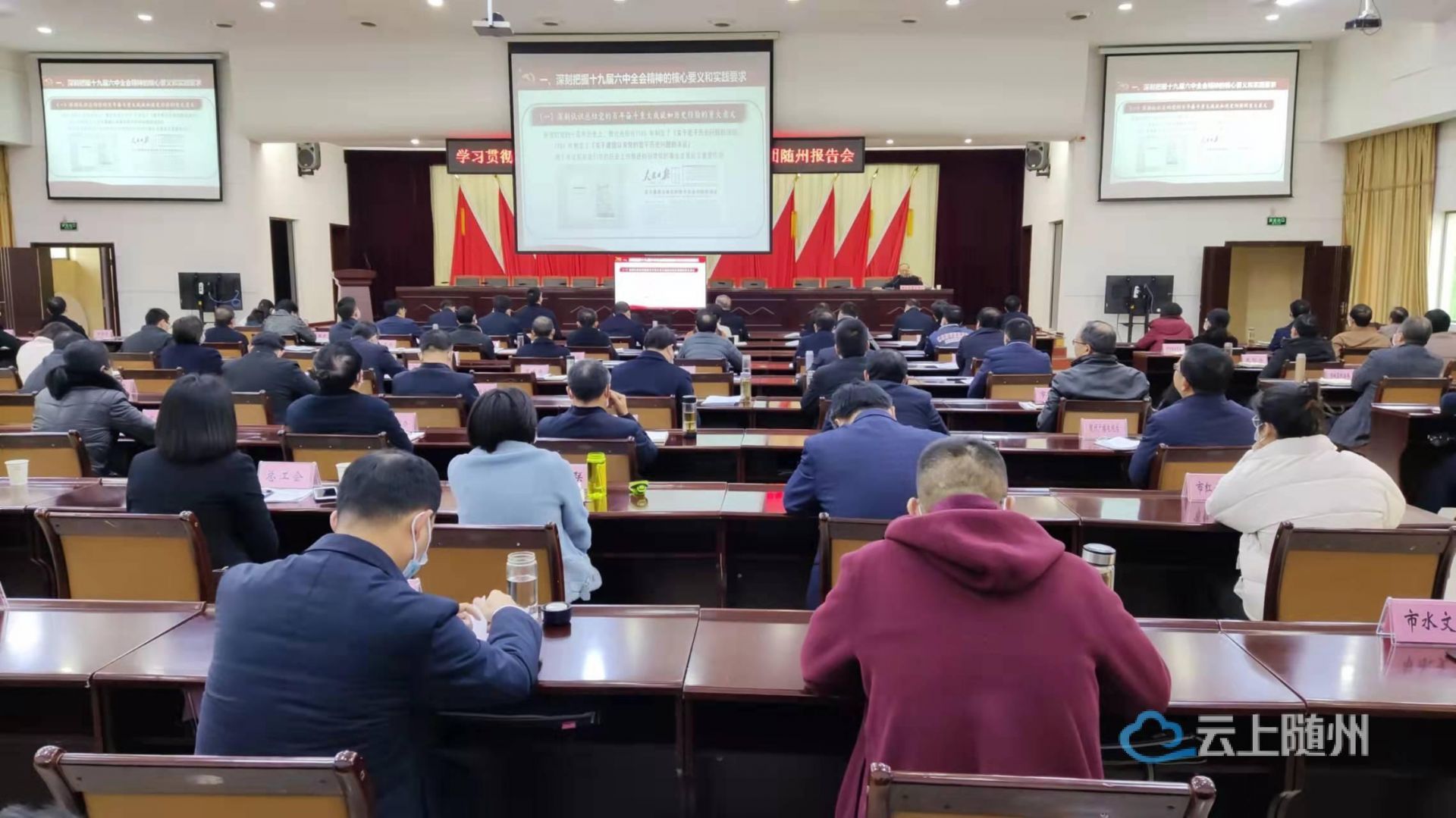 省委宣讲团来随宣讲党的十九届六中全会精神 2021-12-17 15:25 0 12月17日下午,学习十九届六中全会精神湖北省委宣讲团随州报告会在市委会议中心举行,省委宣讲团成员,湖北大学党委书记谢红星做题为《不断推进马克思主义中国化时代化》的辅导报告。 记者:潘翔 编辑:钱思雪 审核:李立 鲁京京 编辑: 钱思雪