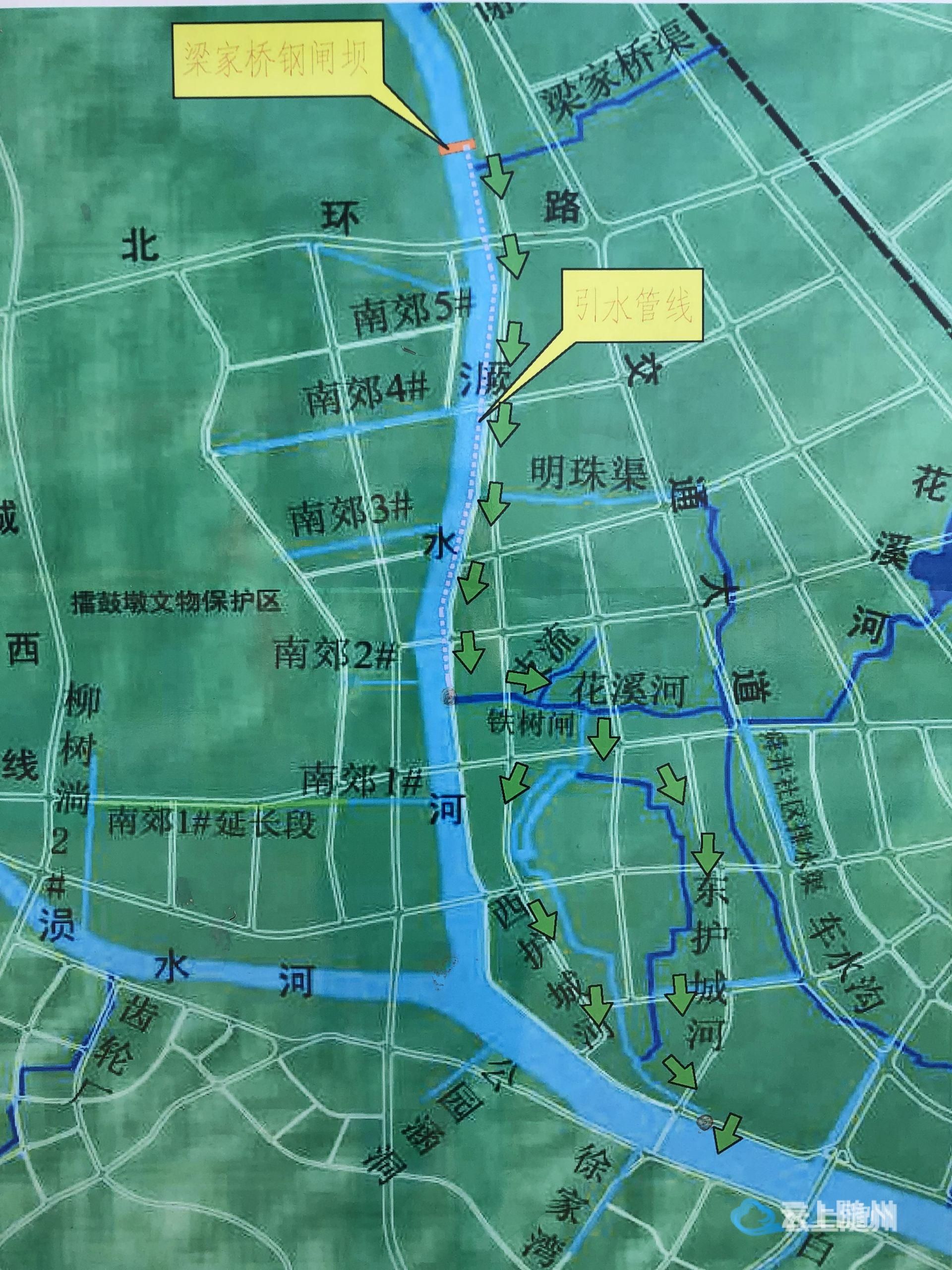 由于城市发展,花溪河向东、西护城河补水流量大幅减少,又因地势高差原因,城市周边水系无法直接流入东、西护城河。为改善内河水环境,我市曾建设花溪泵站,通过抽调河水的方式将㵐水引入城市内河,但效果不明显。2017年,在经过反复论证的基础上,相关部门提出,实施㵐水梁家桥水生态连通工程建设的方案,通过在㵐水梁家桥段兴建拦河闸将上游水位抬高,蓄水通过重力自流方式,沿埋设的输水管道流入花溪河,继而进入东、西护城河,通过生态引水,让城市内河水系流动起来。
