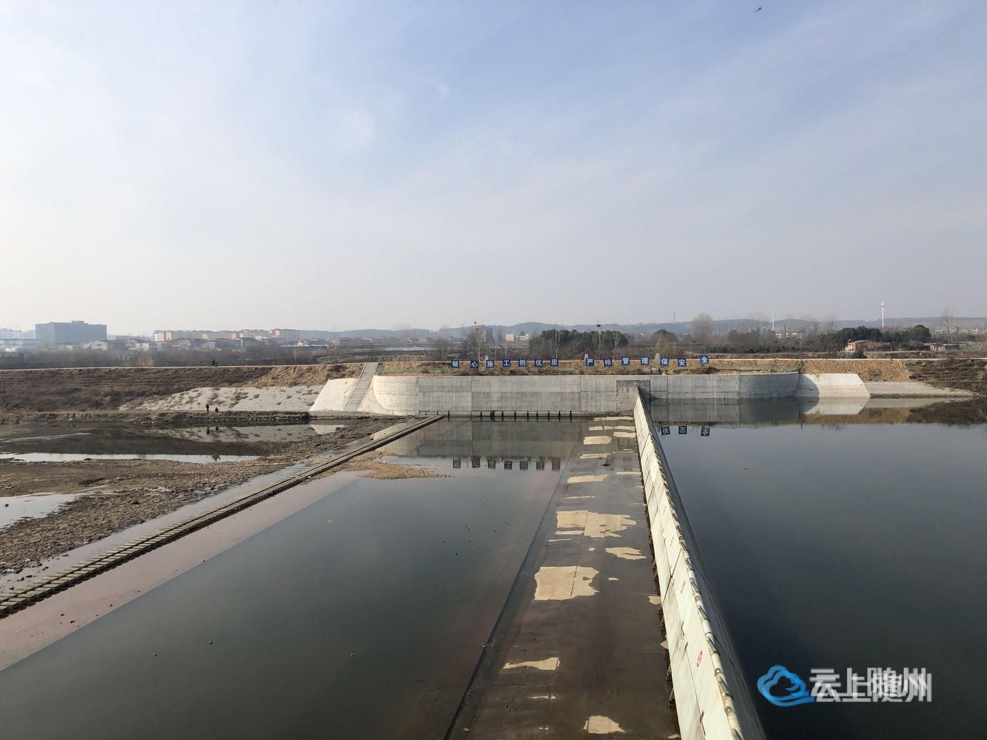 在㵐水曾都经济开发区星光村段,记者见到了㵐水梁家桥水生态连通工程,该项目投资9850万元,现场新建了一座枢纽,由液压钢闸坝、排沙闸、引水闸三部分组成。拦河钢闸坝坝长144米,高4.5米,在引水闸口,经过排沙闸排出淤泥沙石之后的汩汩清澈㵐水正由输水管道流入随城内河。