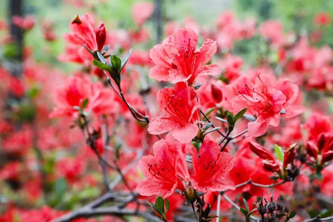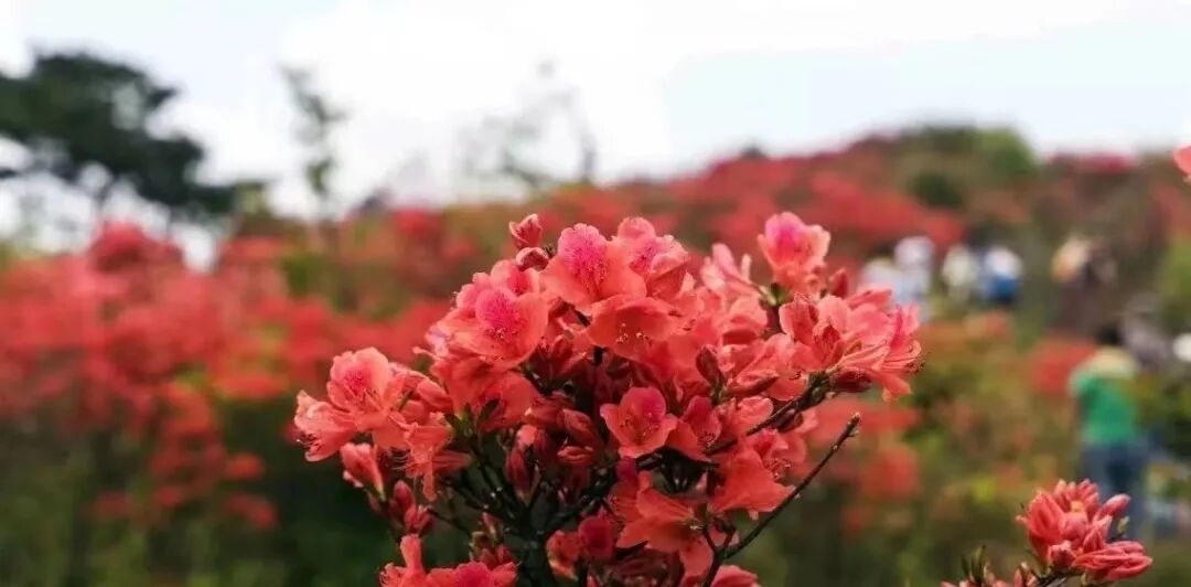 漫山遍野的杜鹃花连成一片,