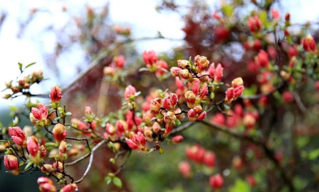 目前,杜鹃花海正处于打苞的时候,