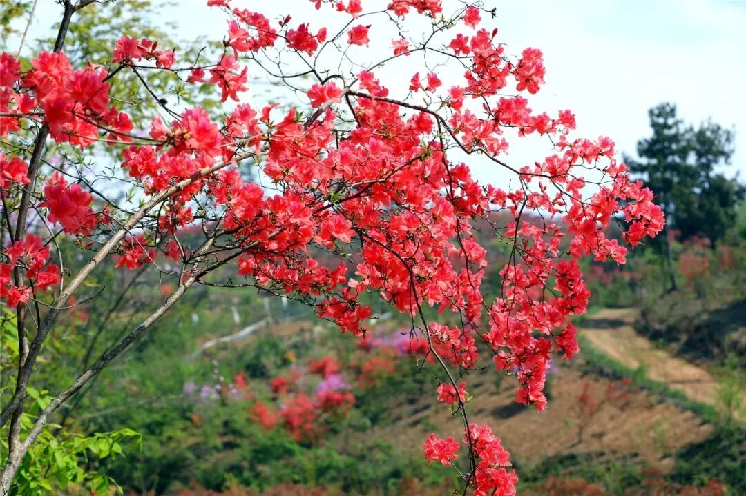 如今的田王寨已经披上了杜鹃色的红装