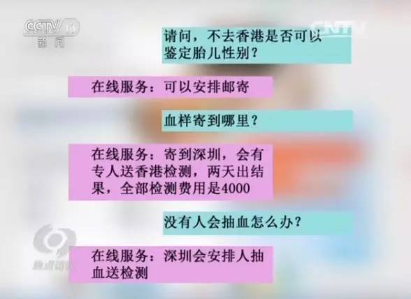 在网上搜索“香港胎儿性别鉴定”,可搜出很多中介网站。某中介网站的客服还表示,即使不去香港也可以鉴定胎儿性别。血样寄到深圳后,会有专人送香港检测,两天出结果,全部检测费用是4000元。如果不会抽血,深圳会安排人抽血送检。这意味着,孕妇如果可以在内地抽血,再送到香港进行化验,那么在内地明令禁止的胎儿性别鉴定,对孕妇而言就会变得简单易行。