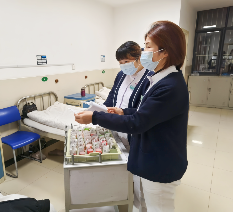 在日常口服药的发放过程中,护理人员严格落实核对制度,确保口服药医嘱执行准确性。医院引进智能化药房,口服药物由全自动药品分包机完成,全程准确、高效和卫生。同时,分包机还会将药品名称、用法用量等关键信息打印在防水药袋上,便于药师及护理人员核对,并且方便患者服用,保障了患者的用药知情权。在执行过程中,护理人员再次双人核对,确保口服药摆放的准确;在发放药物时严格落实双人核对,确保所有病人的口服药“发放到手,看服到口,咽下才走”,防止有些不配合的患者扔药、藏药,确保了用药的准确及安全。